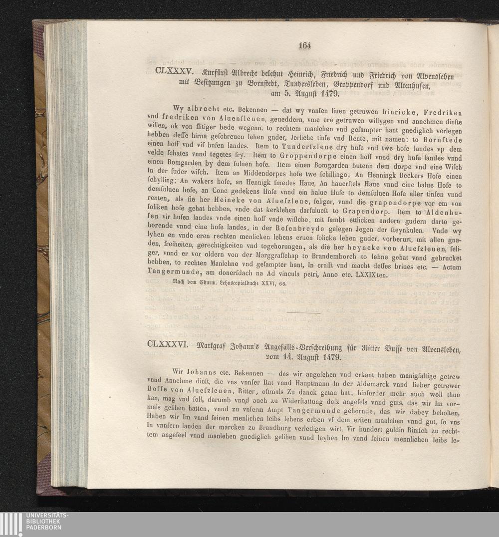 CLXXXVI. Markgraf Johann’s Angefälls-Verschreibung für Ritter Busse von Alvensleben,[...]