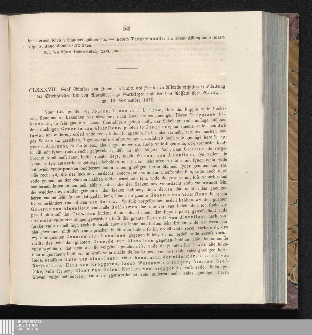 CLXXXVII. Graf Günther von Lindow bekundet des Kurfürsten Albrecht rechtliche Entscheidung[...]