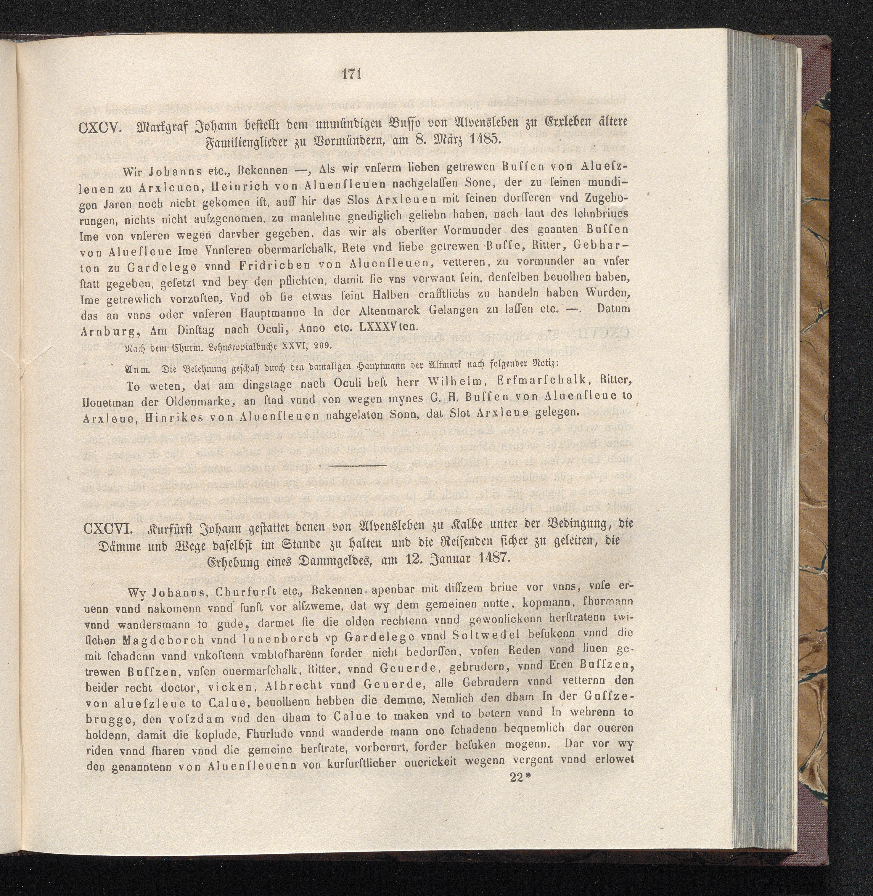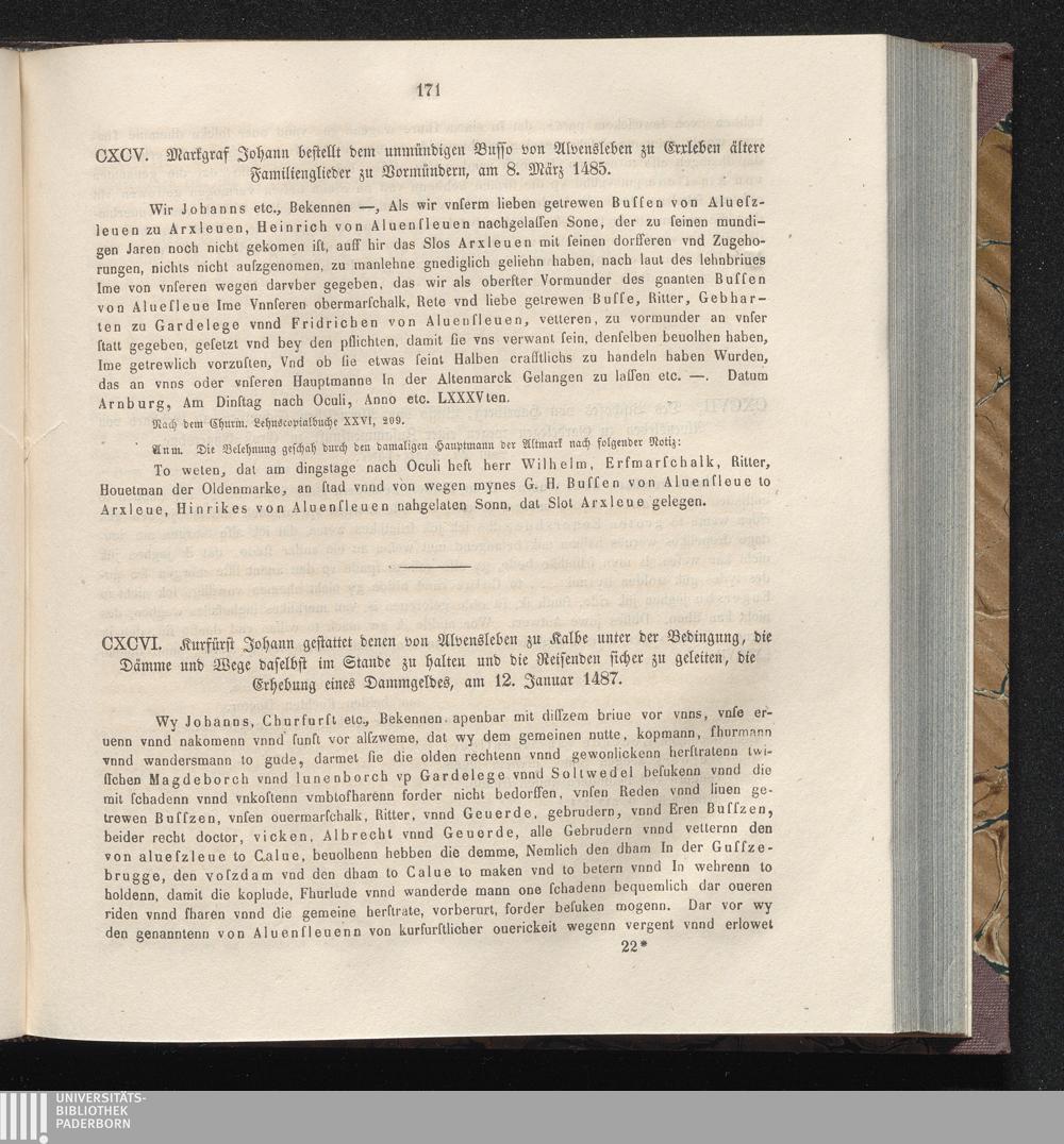 CXCVI. Kurfürst Johann gestattet denen von Alvensleben zu Kalbe unter der Bedingung,[...]