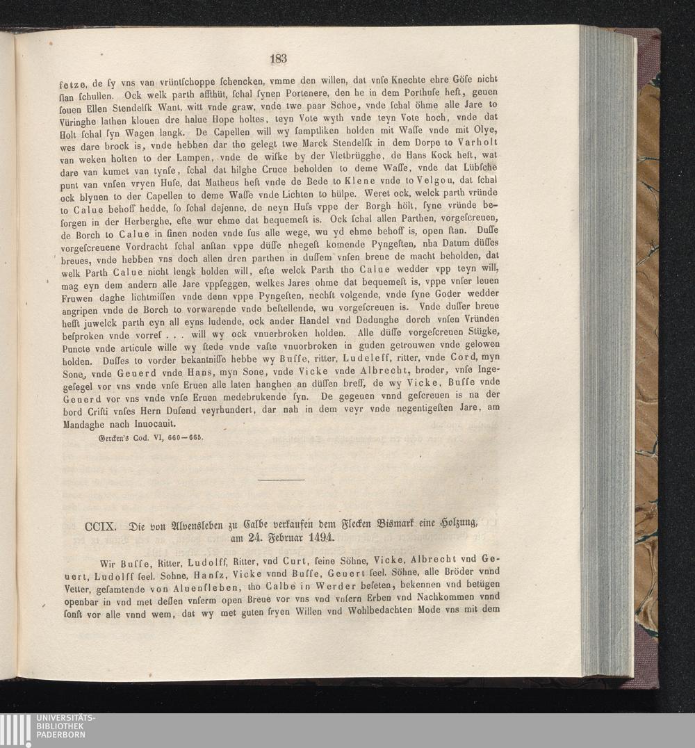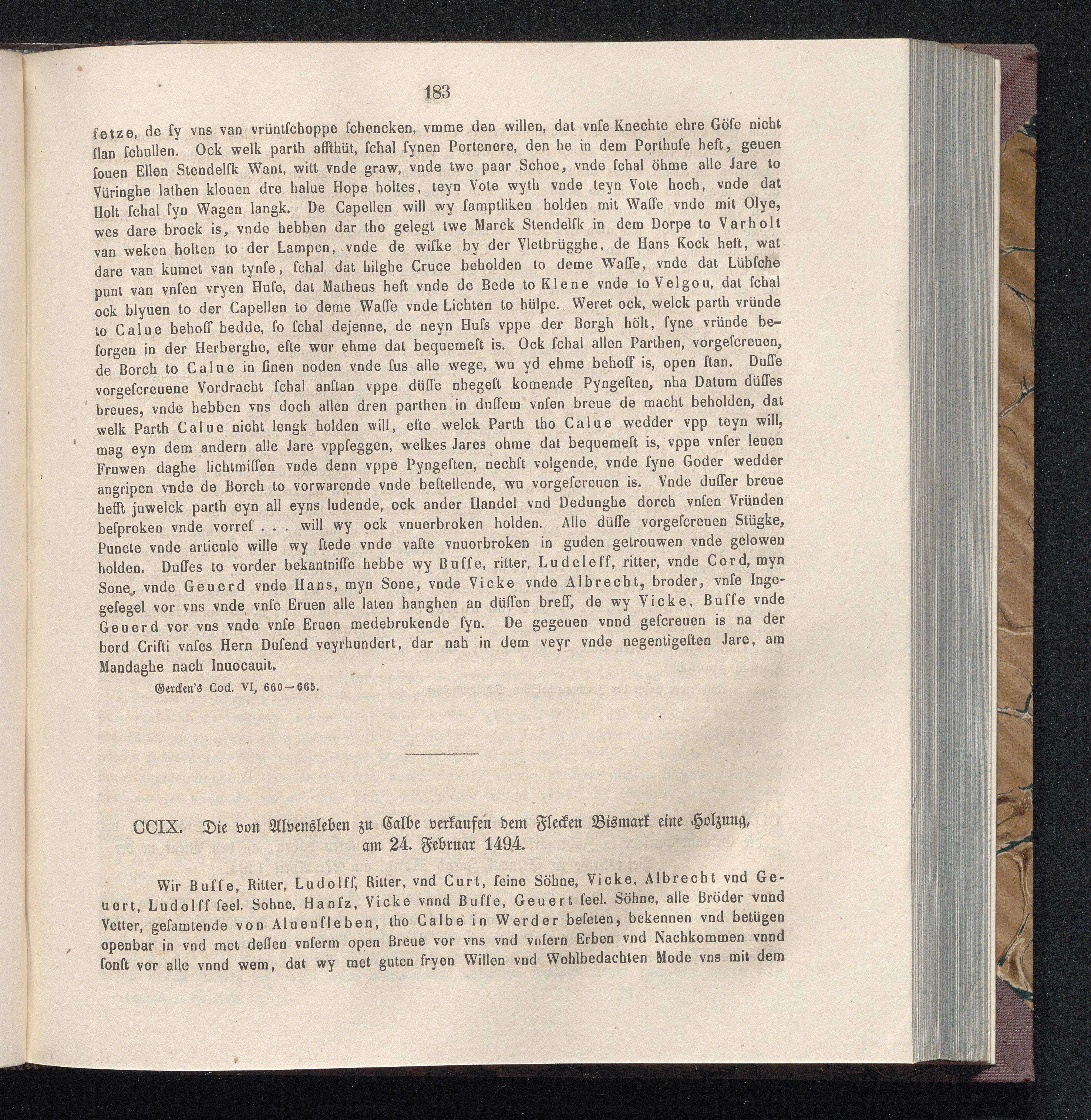 CCIX. Die von Alvensleben zu Calbe verkaufen dem Flecken Bismark eine Holzung, am[...]