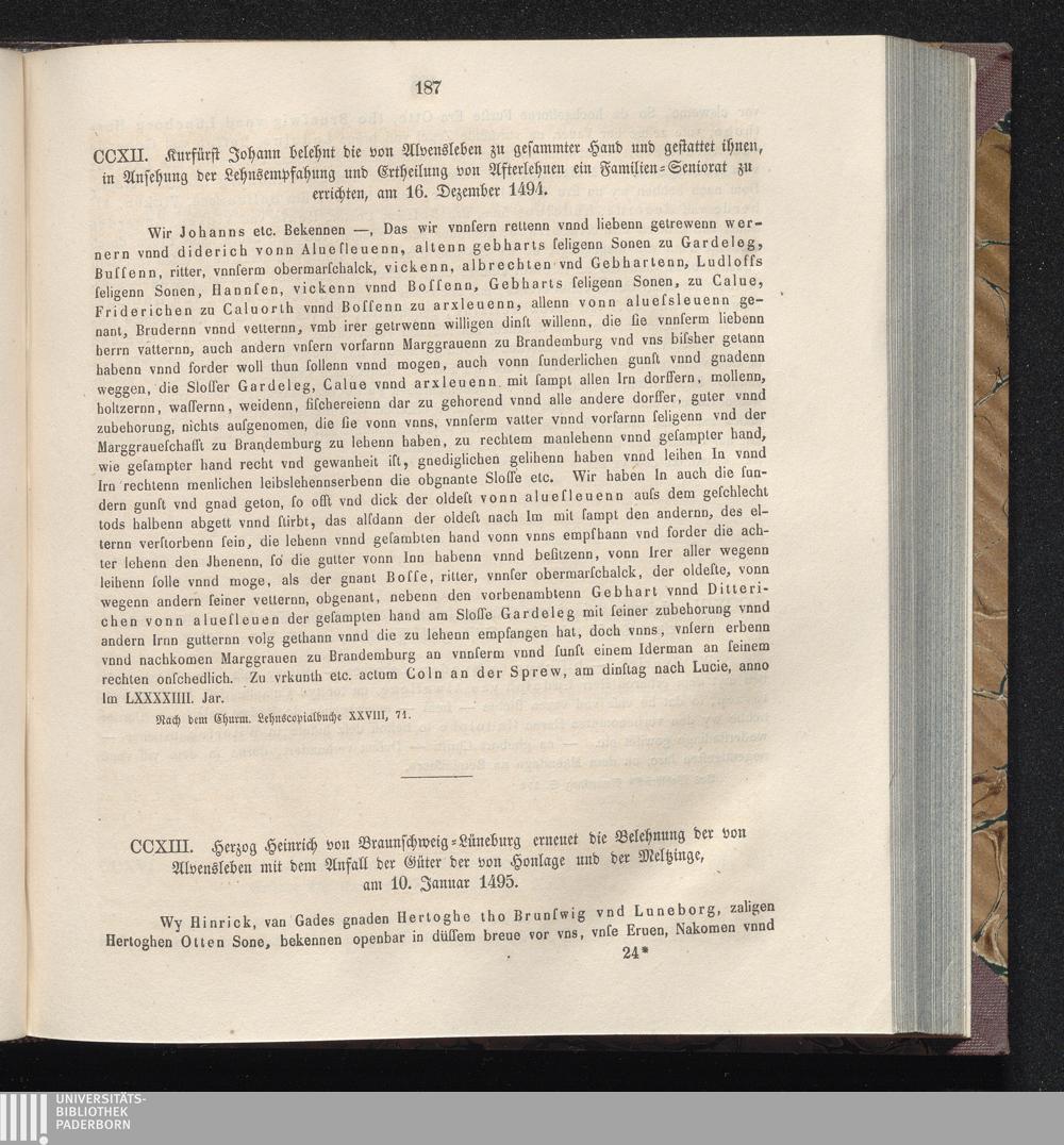 CCXIII. Herzog Heinrich von Braunschweig-Lüneburg erneuet die Belehnung der von Alvensleben[...]