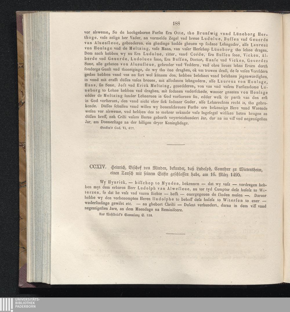 CCXIV. Heinrich, Bischof von Minden, bekundet, daß Ludolph, Comthur zu Wietersheim,[...]