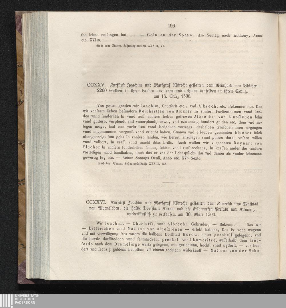 CCXXVI. Kurfürst Joachim und Markgraf Albrecht gestatten dem Dieterich und Mathias[...]