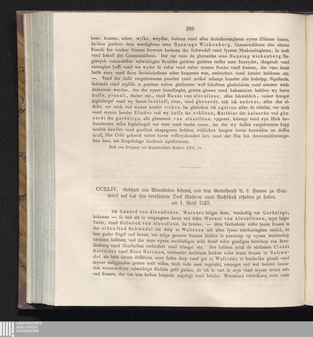 CCXLIV. Gebhard von Alvensleben bekennt, von dem Gotteshause U. L. Frauen zu Salzwedel[...]