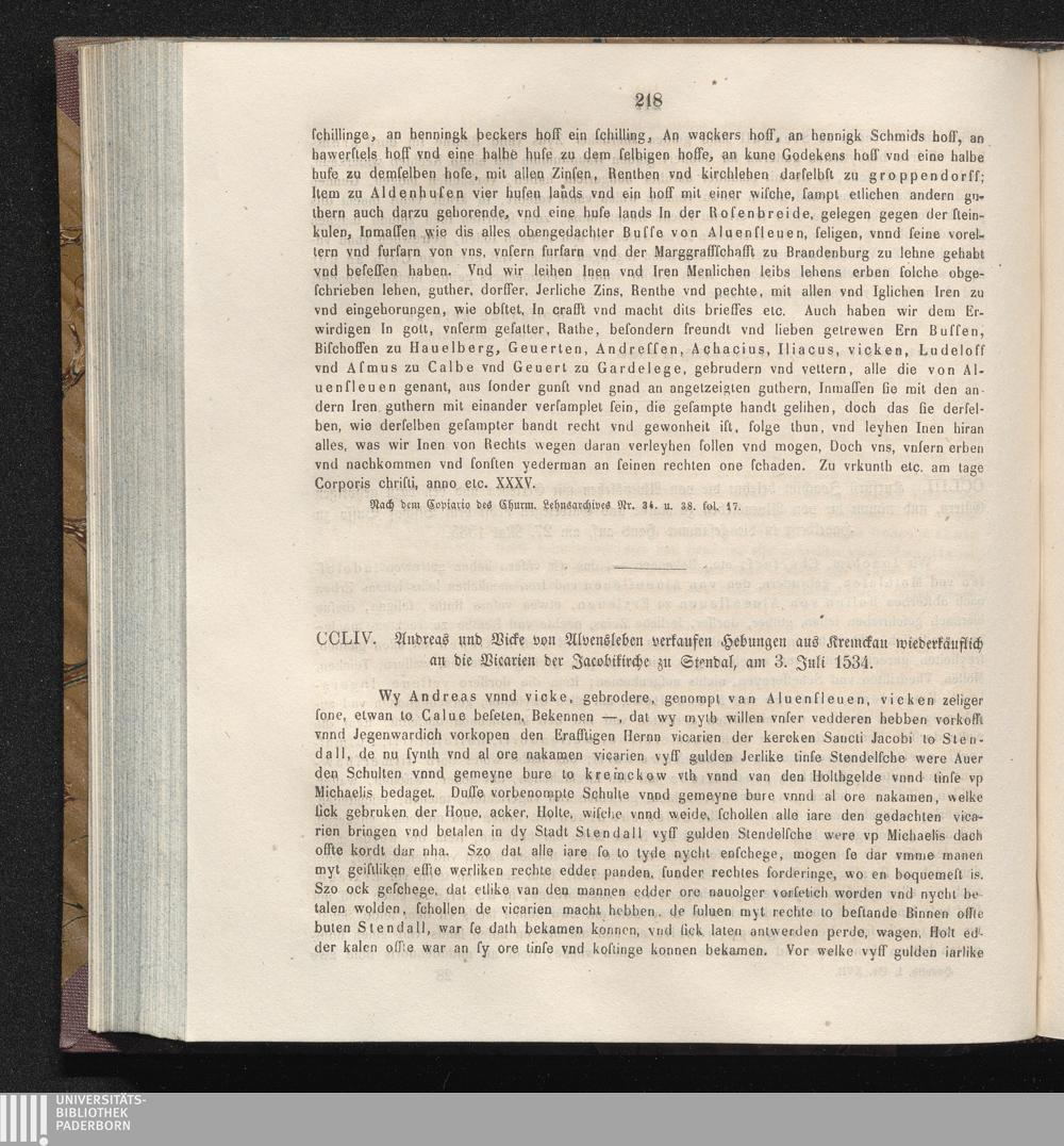 CCLIV. Andreas und Vicke von Alvensleben verkaufen Hebungen aus Kremckau wiederkäuflich[...]