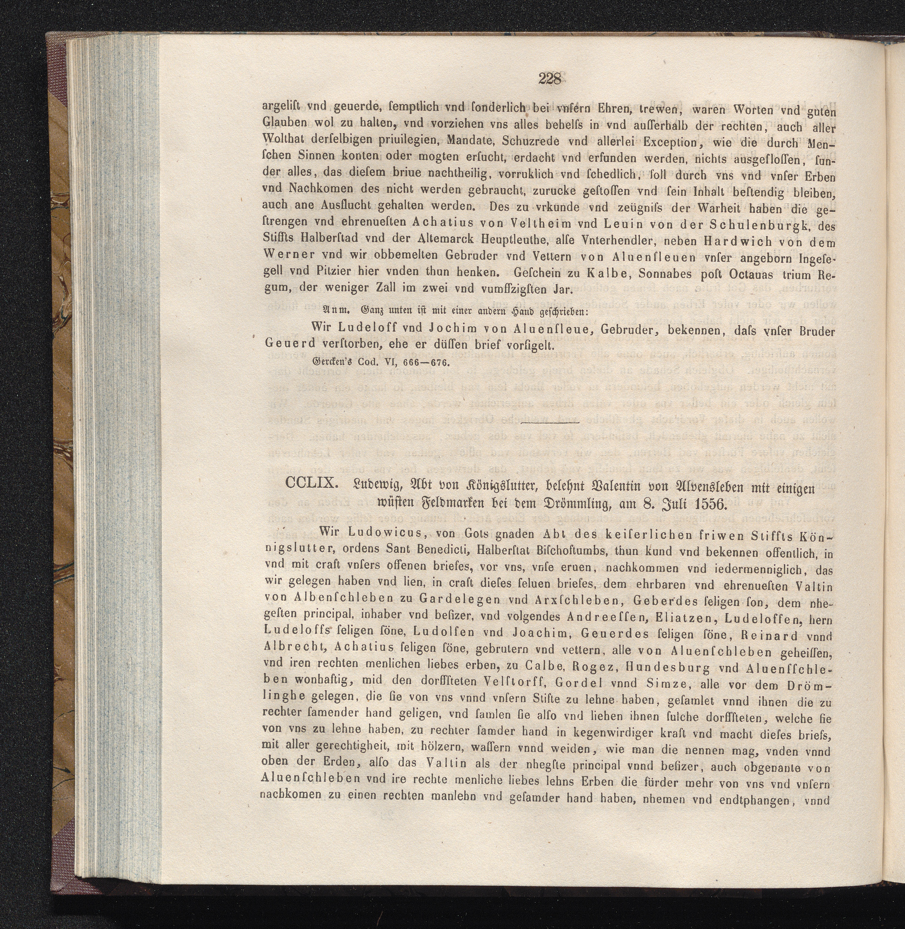 CCLIX. Ludewig, Abt von Königslutter, belehnt Valentin von Alvensleben mit einigen[...]