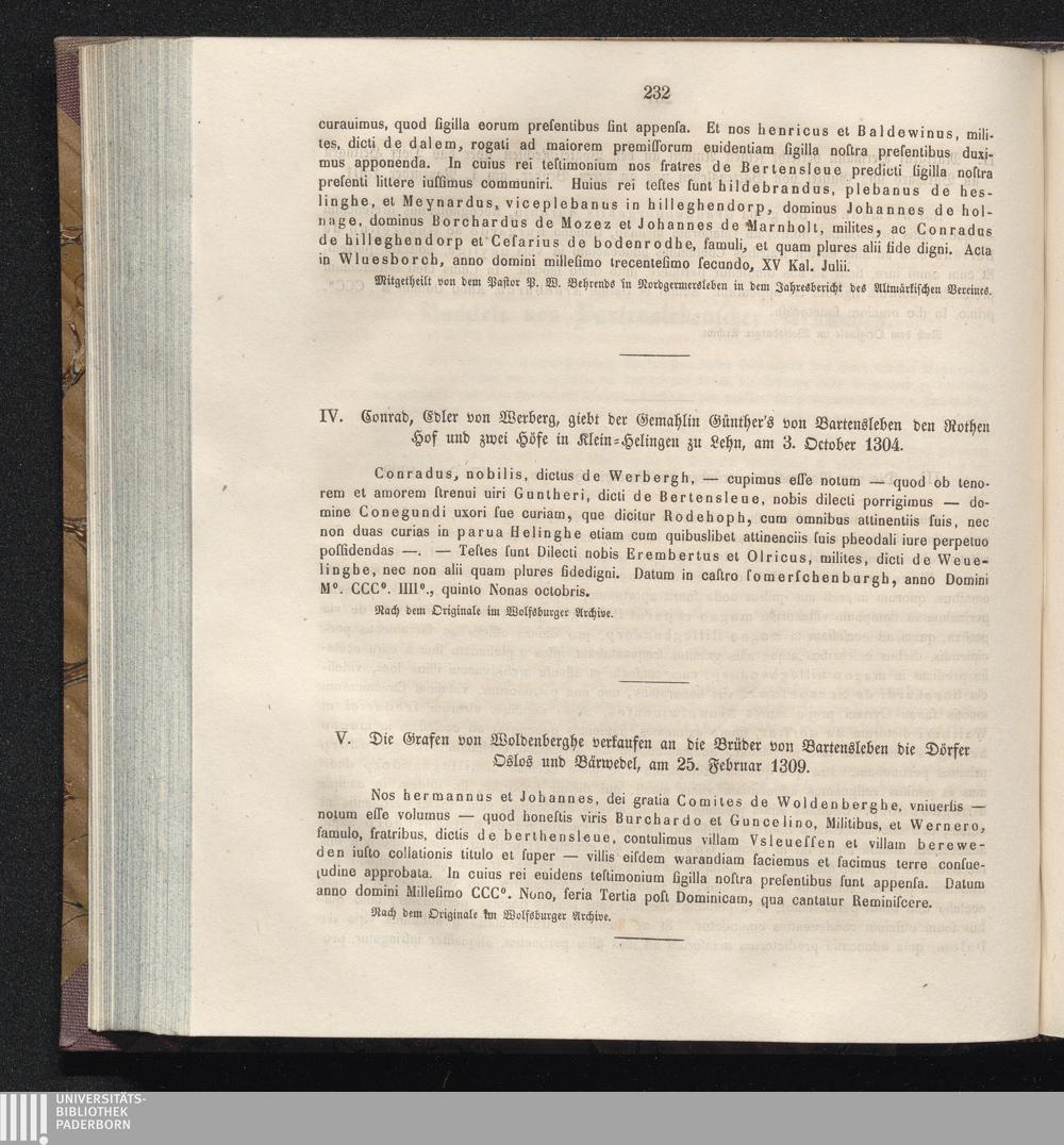V. Die Grafen von Woldenberghe verkaufen an die Brüder von Bartensleben die Dörfer[...]