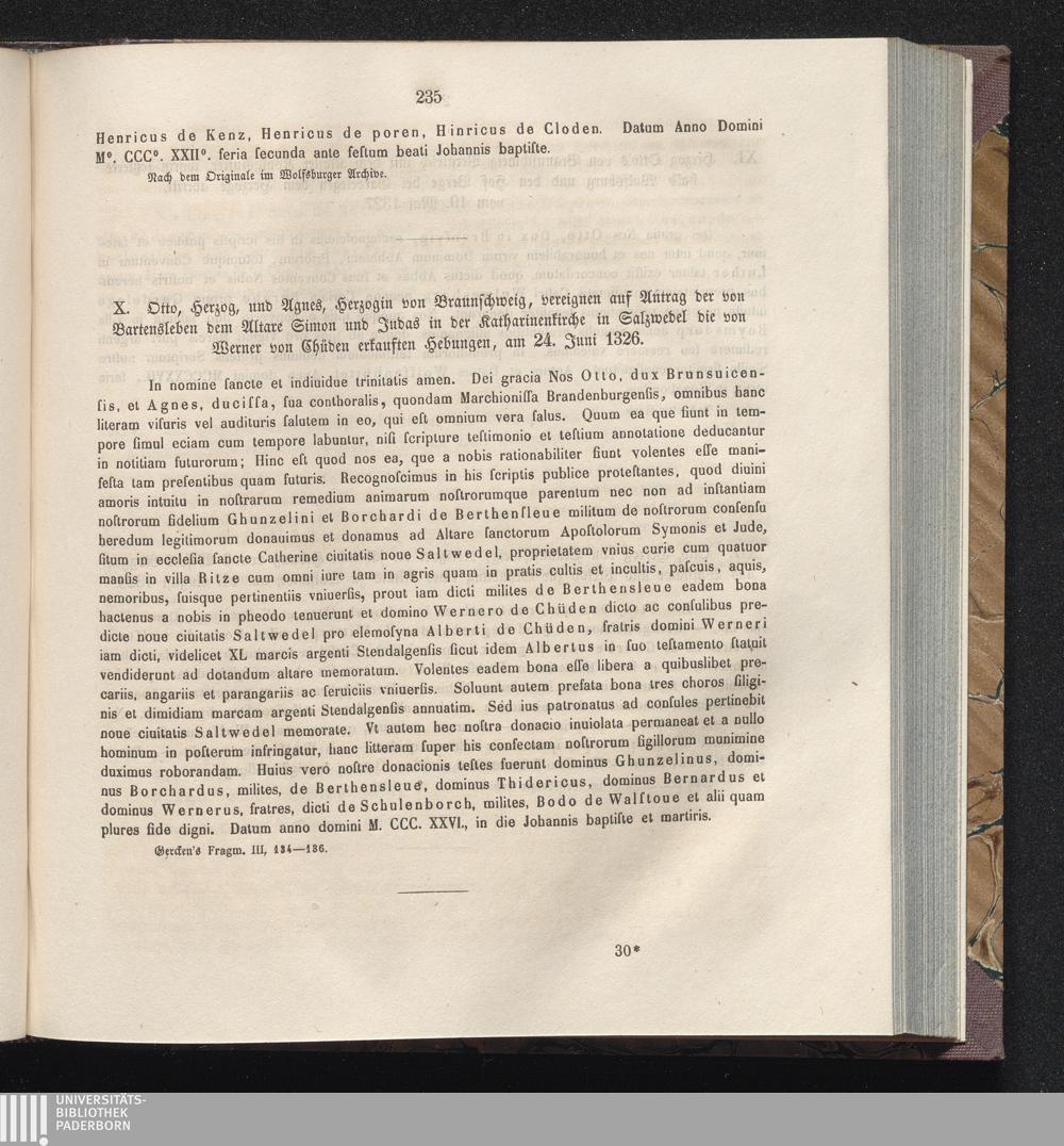 X. Otto, Herzog, und Agnes, Herzogin von Braunschweig, vereignen auf Antrag der von[...]