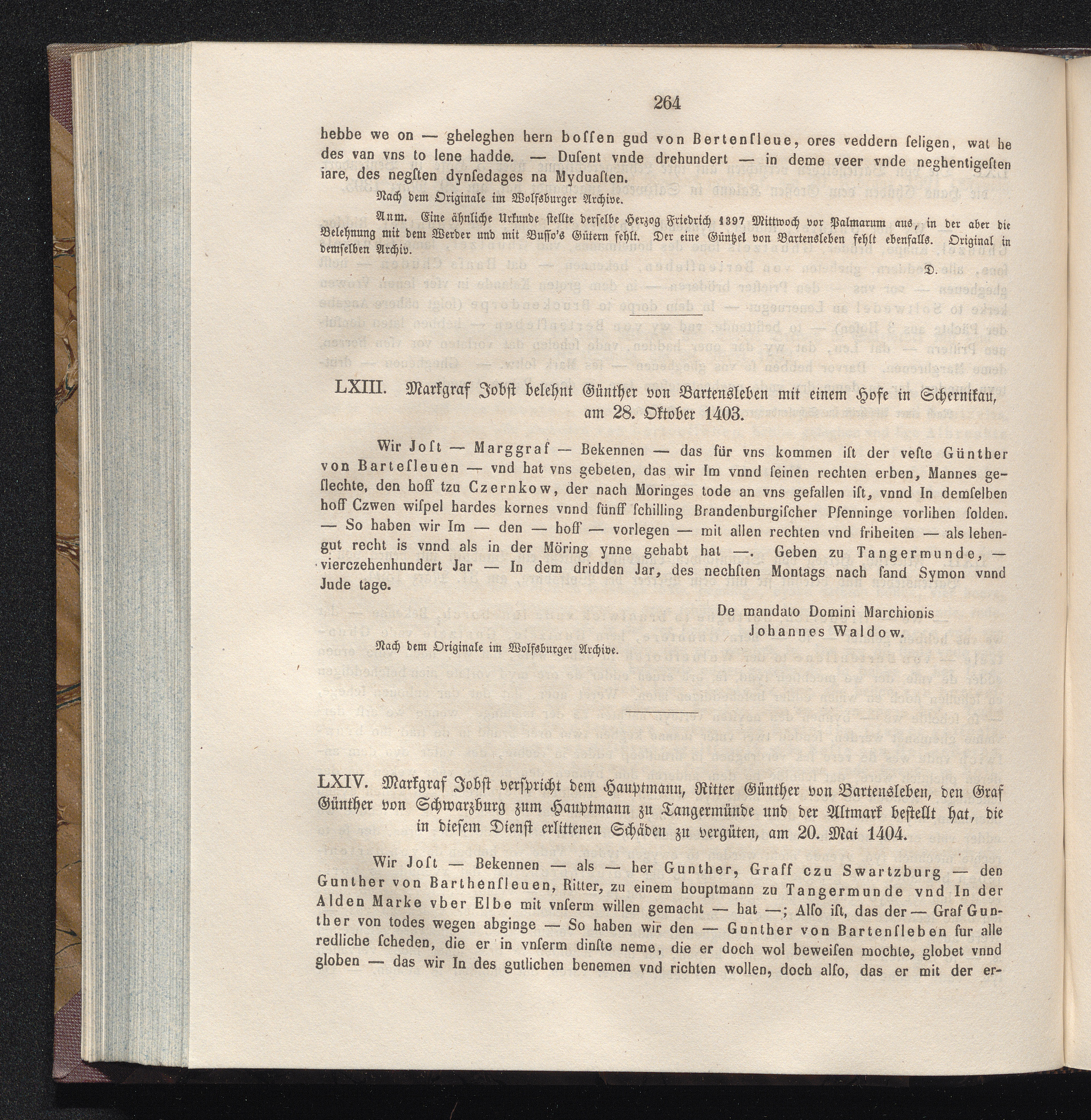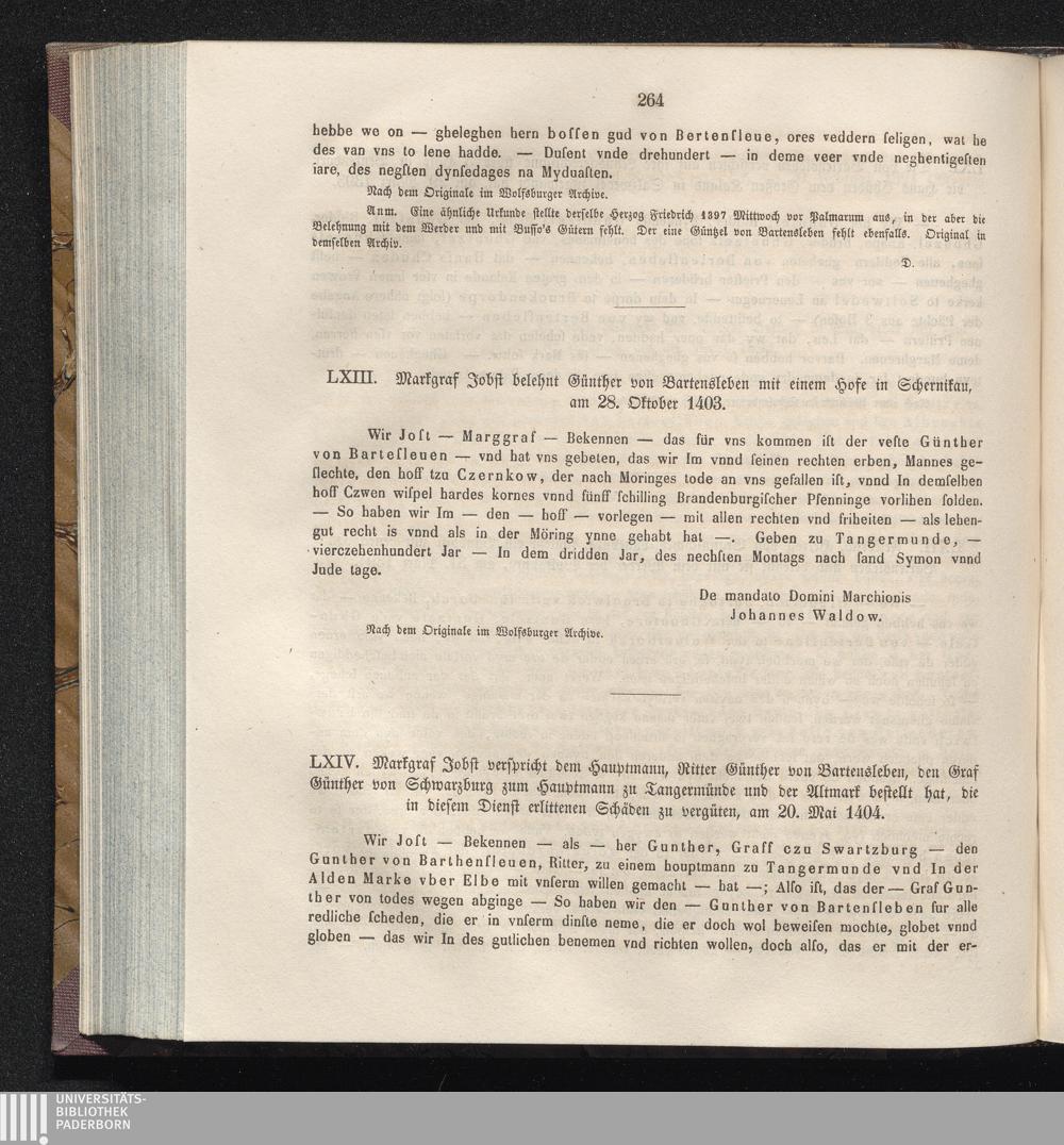 LXIV. Markgraf Jobst verspricht dem Hauptmann, Ritter Günther von Bartensleben, den[...]