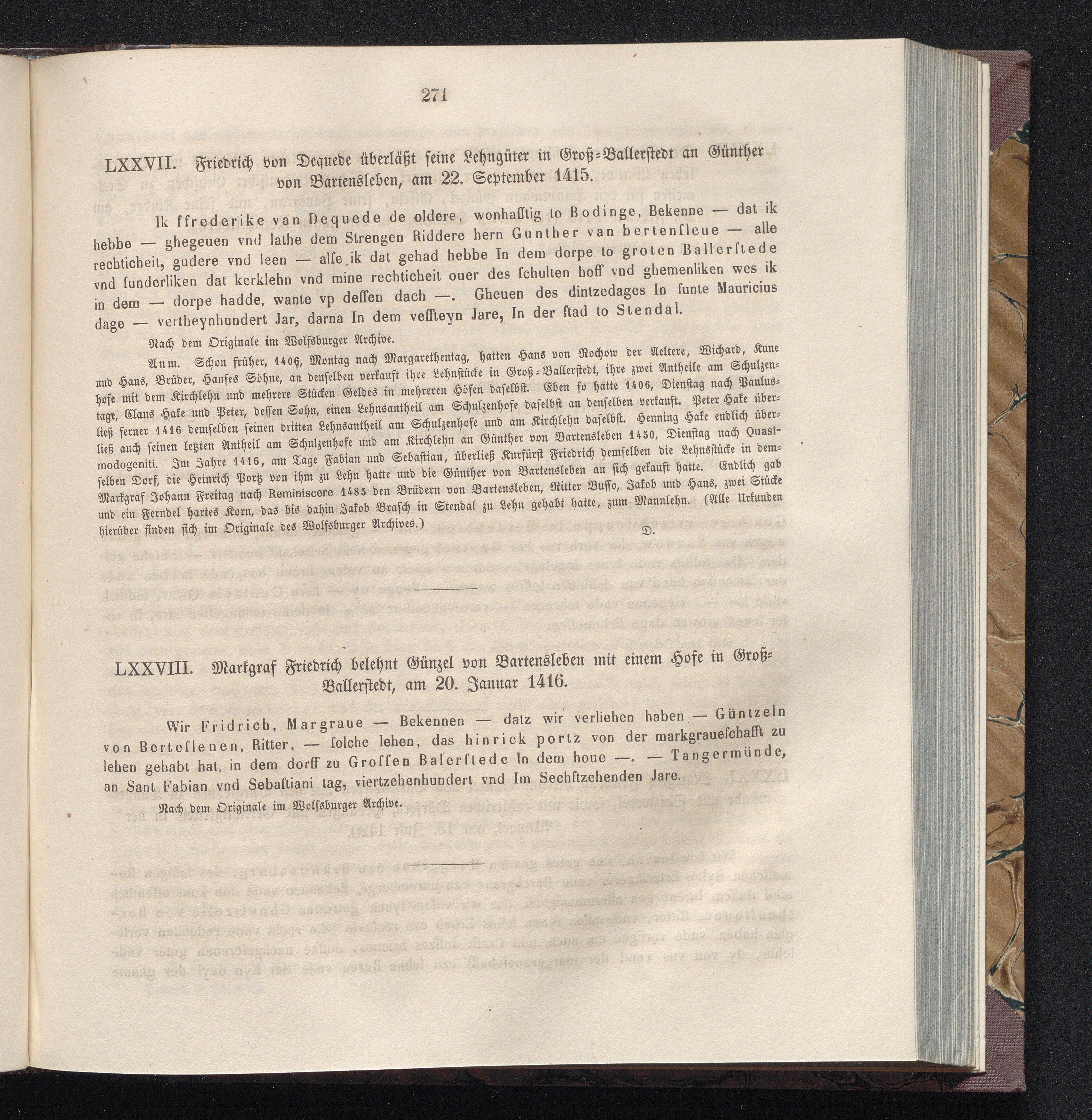 LXXVIII. Markgraf Friedrich belehnt Günzel von Bartensleben mit einem Hofe in Groß-Ballerstedt,[...]