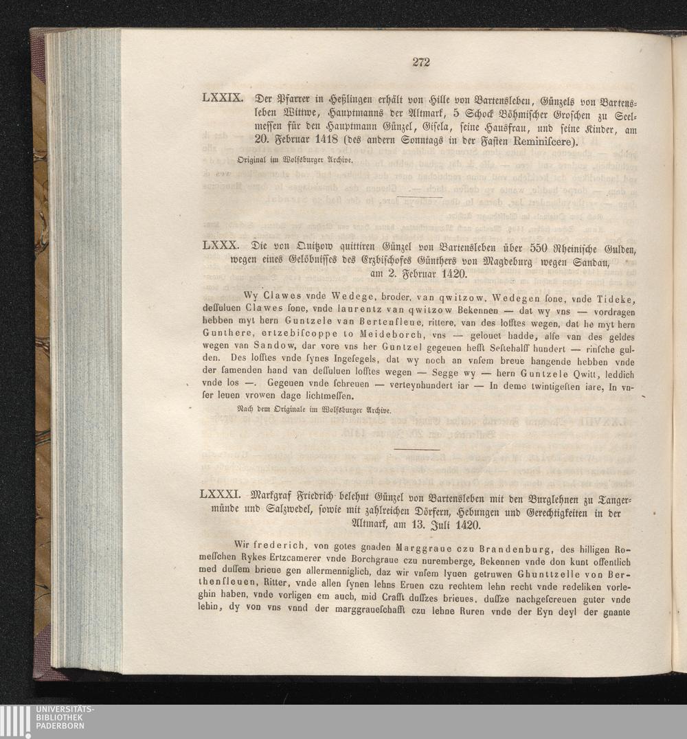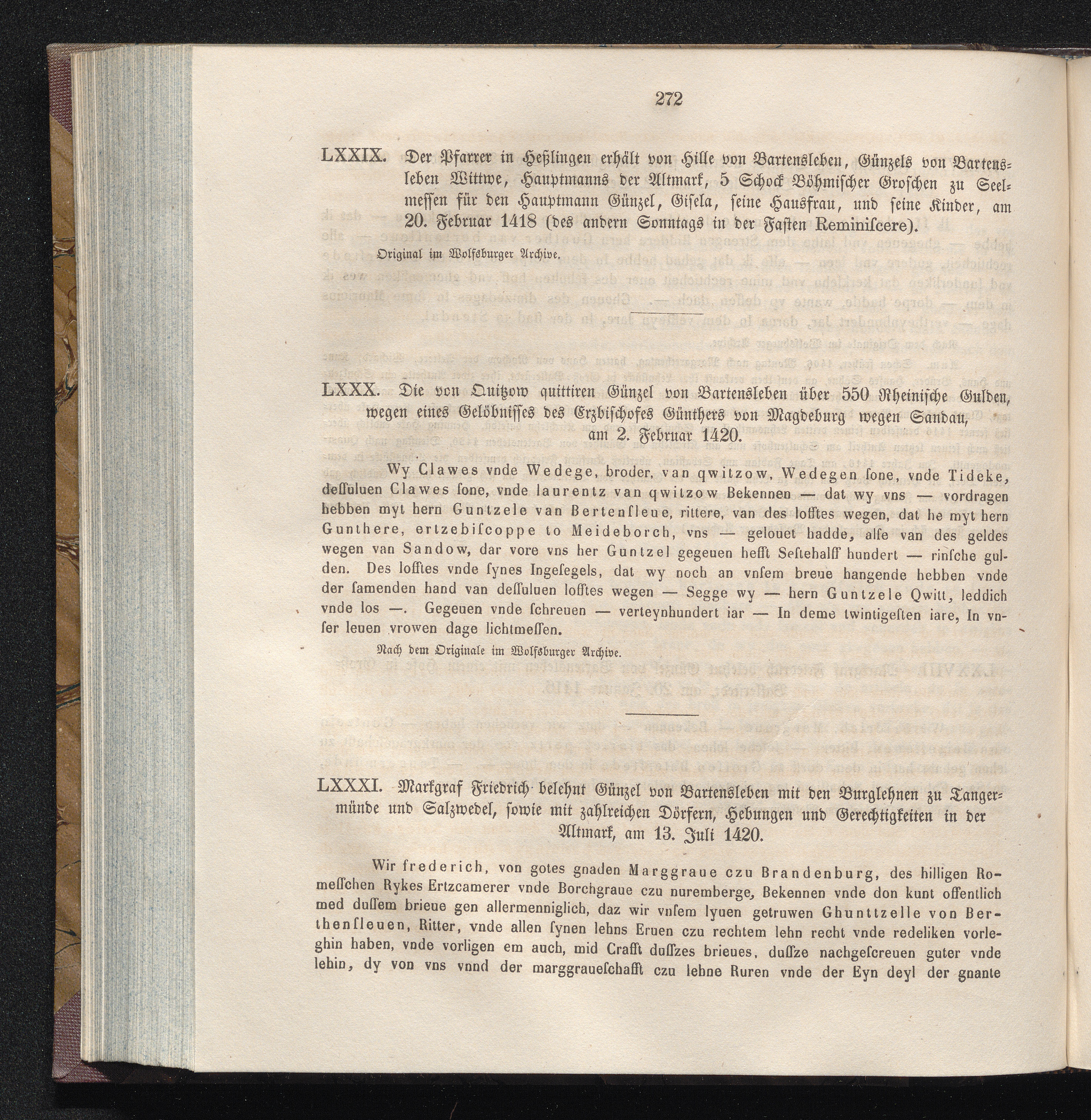 LXXXI. Markgraf Friedrich belehnt Günzel von Bartensleben mit den Burglehnen zu Tangermünde[...]