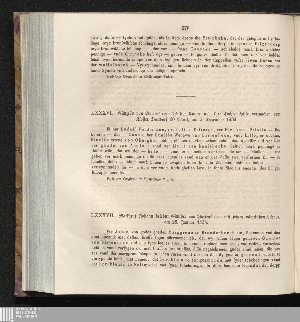 LXXXVII. Markgraf Johann belehnt Günther von Bartensleben mit seinen väterlichen[...]