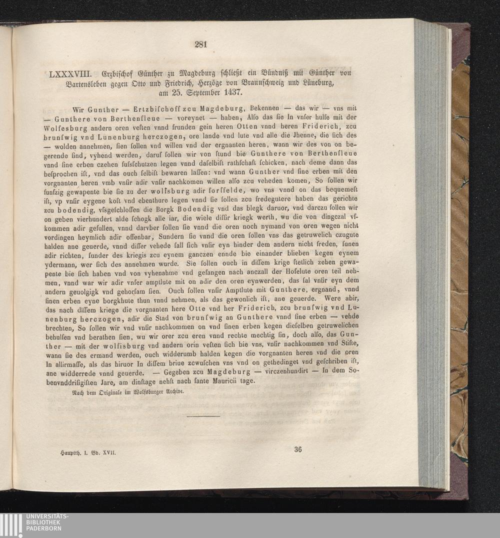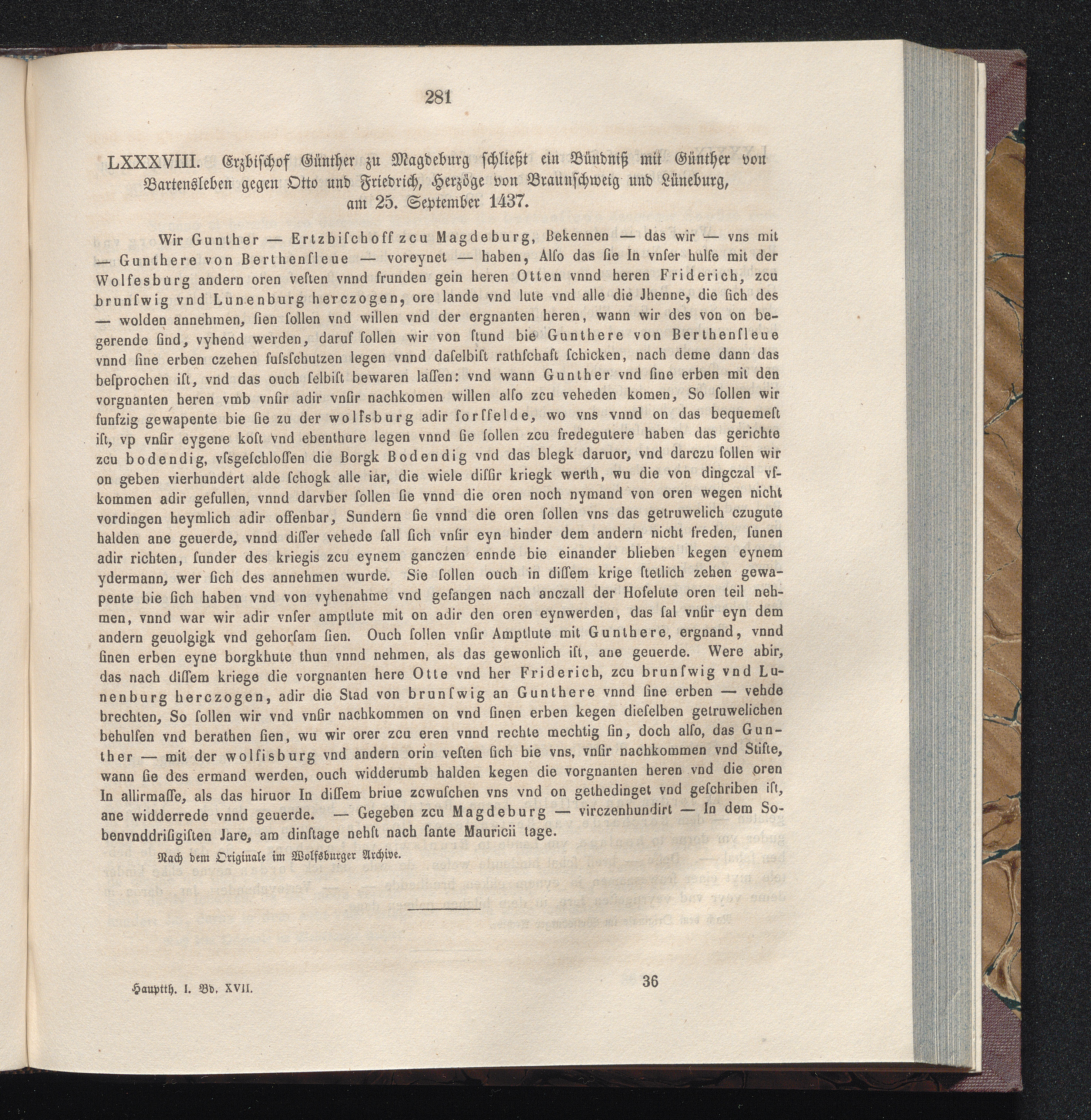 LXXXVIII. Erzbischof Günther zu Magdeburg schließt ein Bündniß mit Günther von Bartensleben[...]