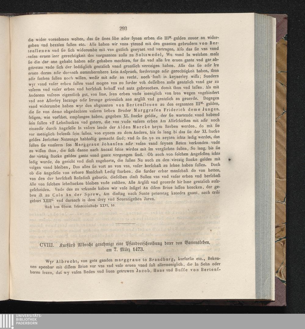 CVIII. Kurfürst Albrecht genehmigt eine Pfandverschreibung derer von Bartensleben,[...]