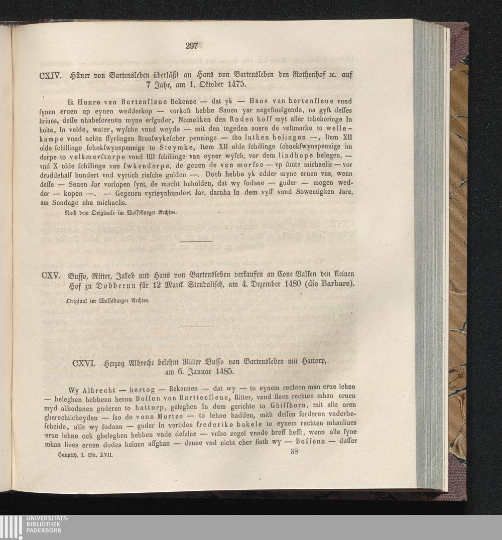 CXVI. Herzog Albrecht belehnt Ritter Busso von Bartensleben mit Hattorp, am 6. Januar[...]