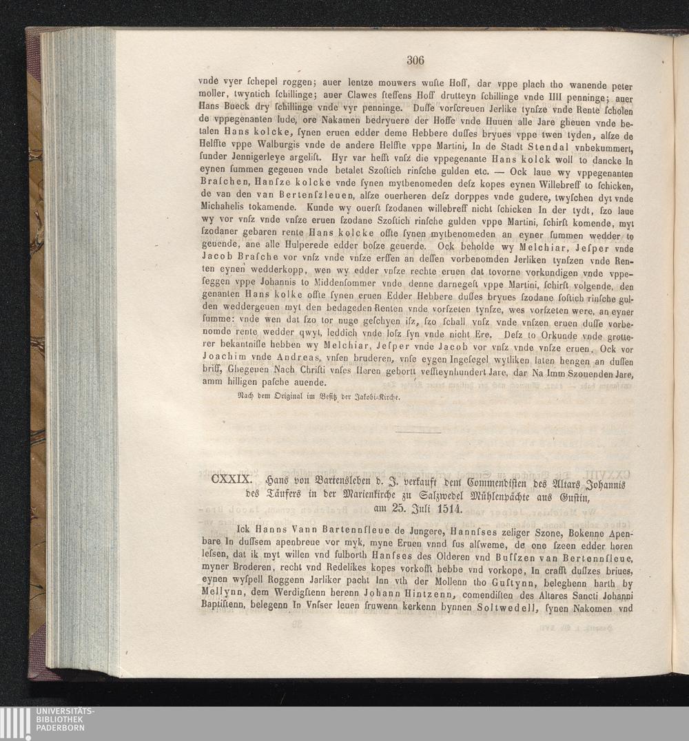 CXXIX. Hans von Bartensleben d. J. verkauft dem Commendisten des Altars Johannis[...]