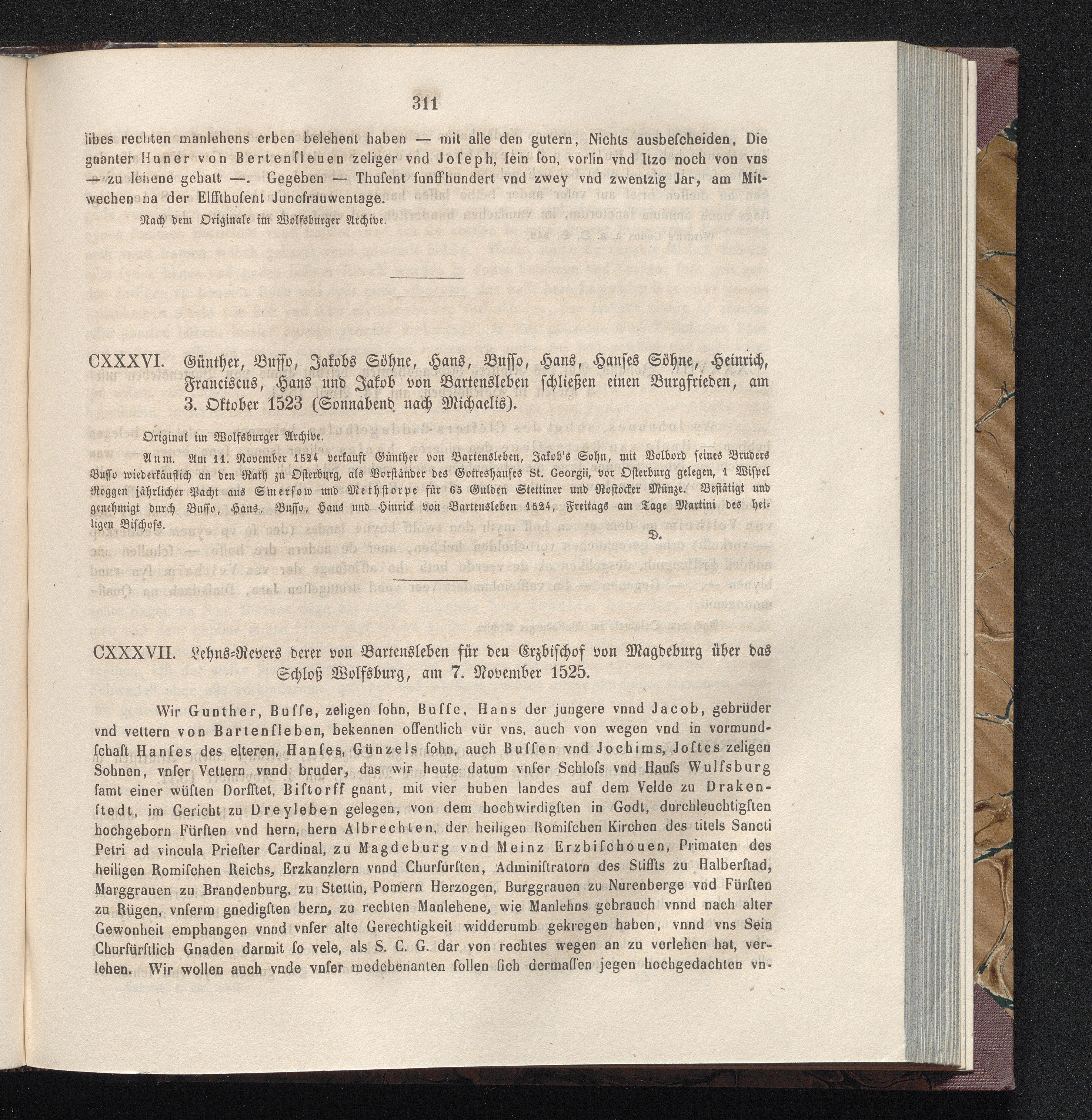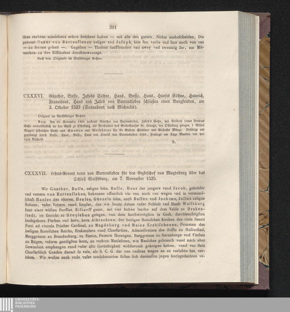 CXXXVII. Lehns-Revers derer von Bartensleben für den Erzbischof von Magdeburg über[...]