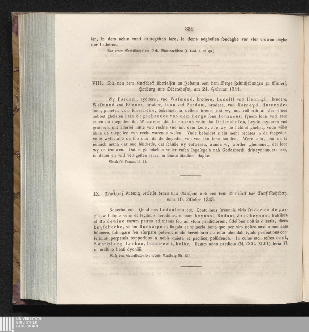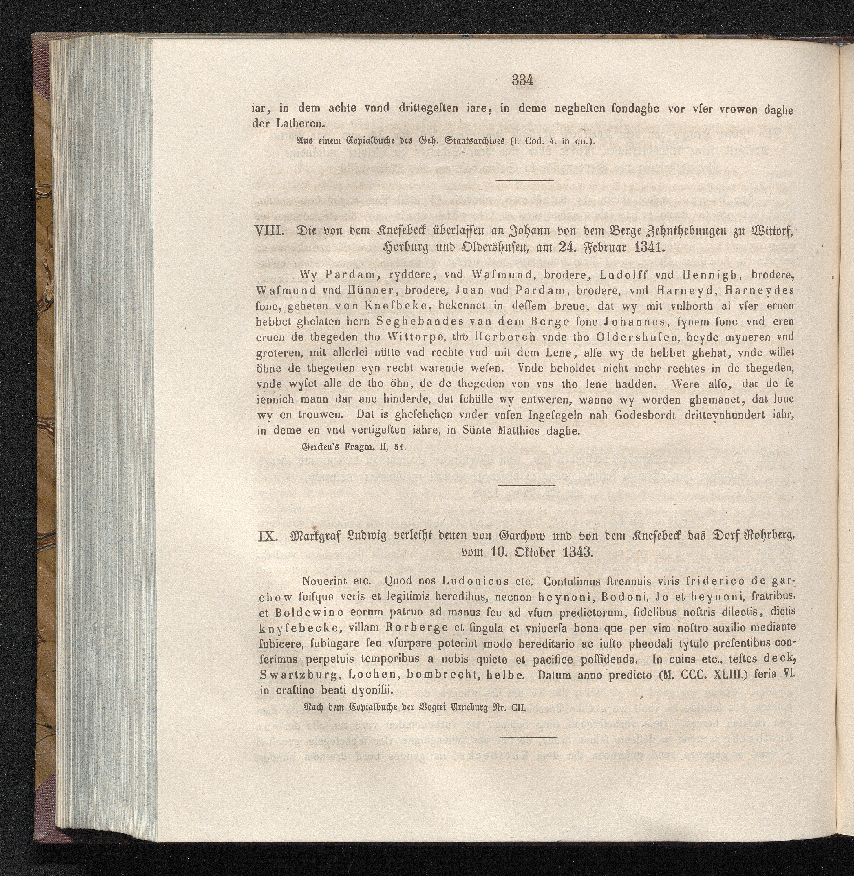 IX. Markgraf Ludwig verleiht denen von Garchow und von dem Knesebeck das Dorf Rohrberg,[...]