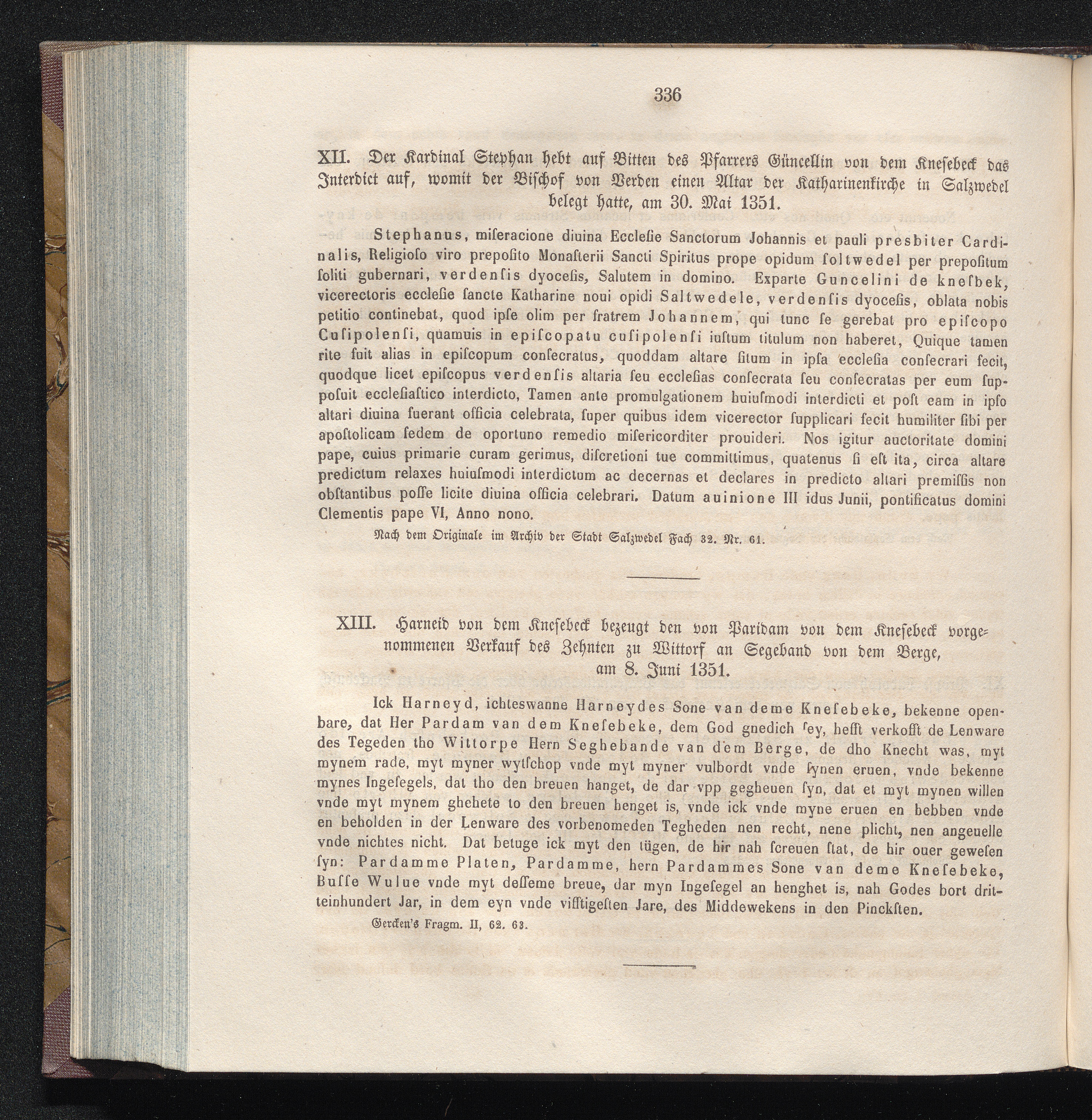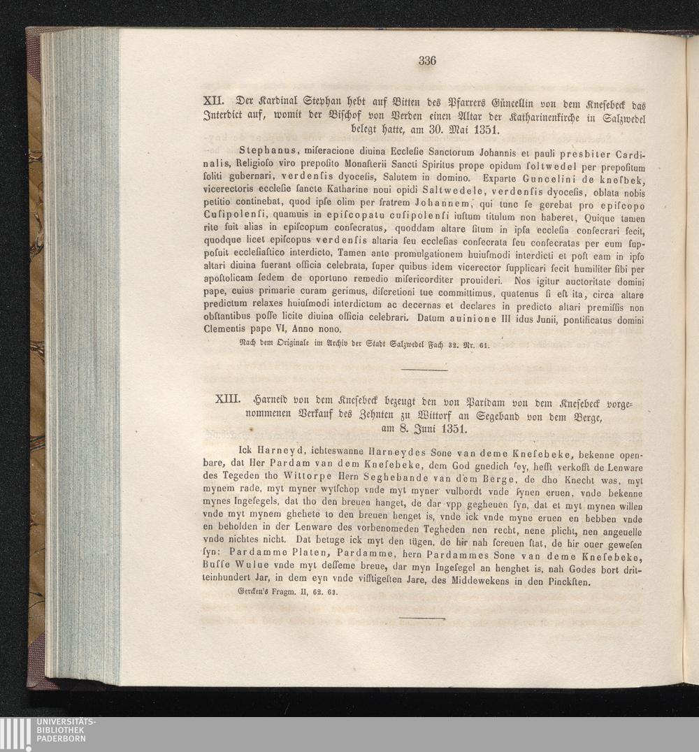 XIII. Harneid von dem Knesebeck bezeugt den von Paridam von dem Knesebeck vorgenommenen[...]