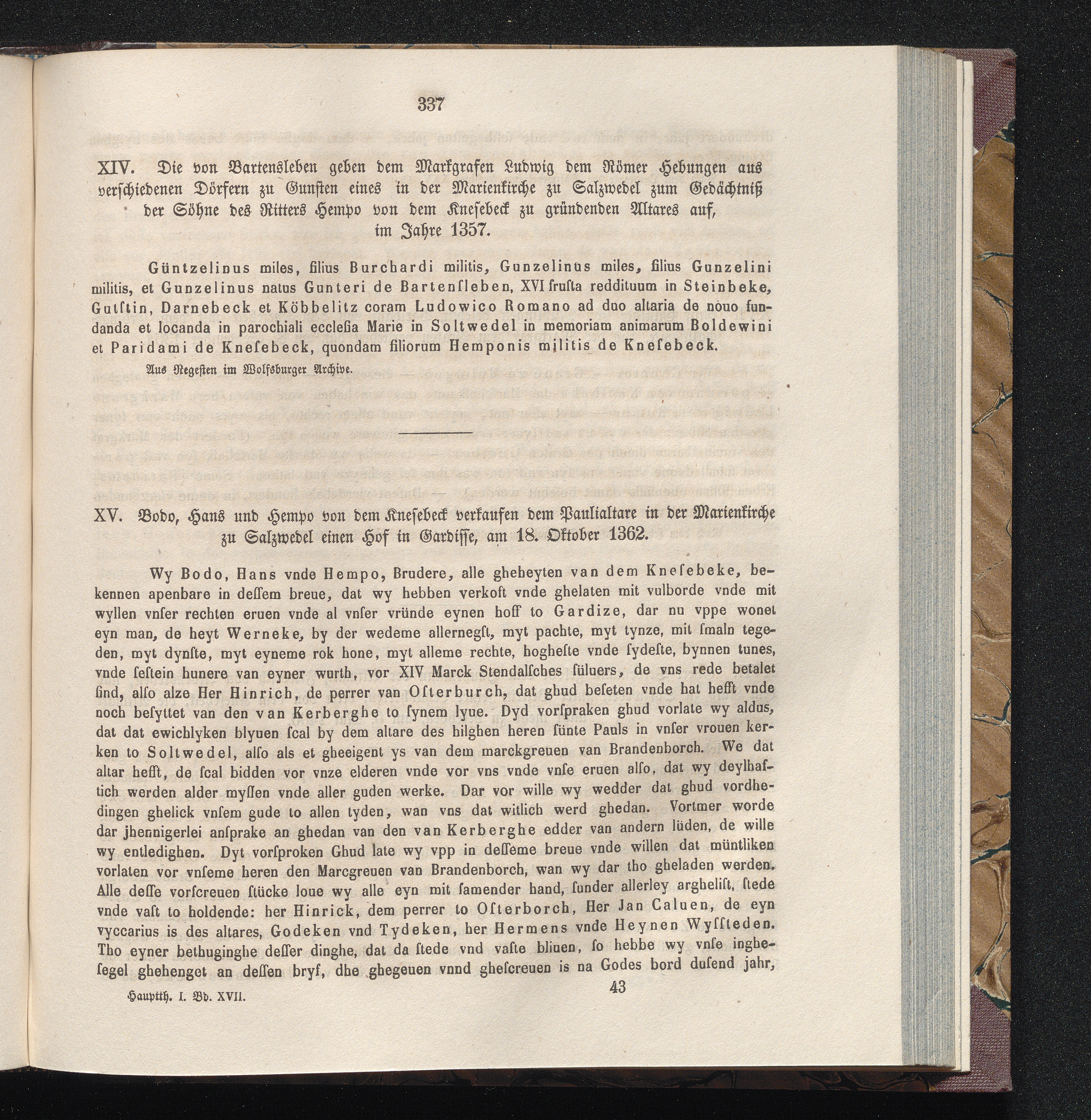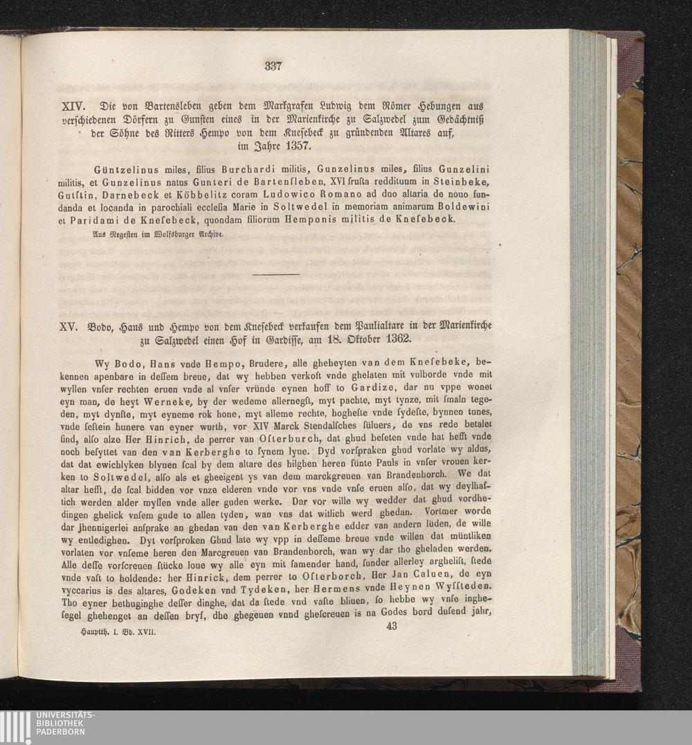 XV. Bodo, Hans und Hempo von dem Knesebeck verkaufen dem Paulialtare in der Marienkirche[...]
