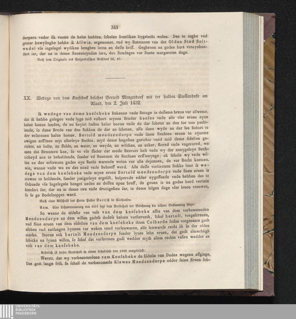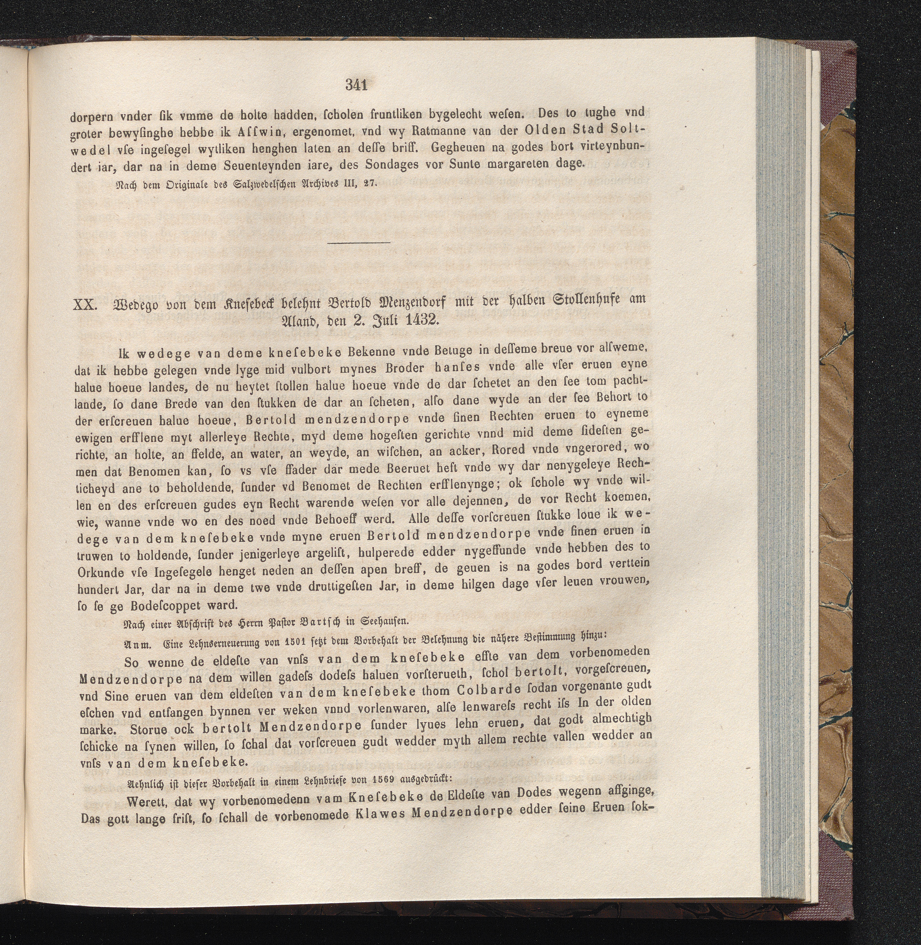 XX. Wedego von dem Knesebeck belehnt Bertold Menzendorf mit der halben Stollenhufe[...]