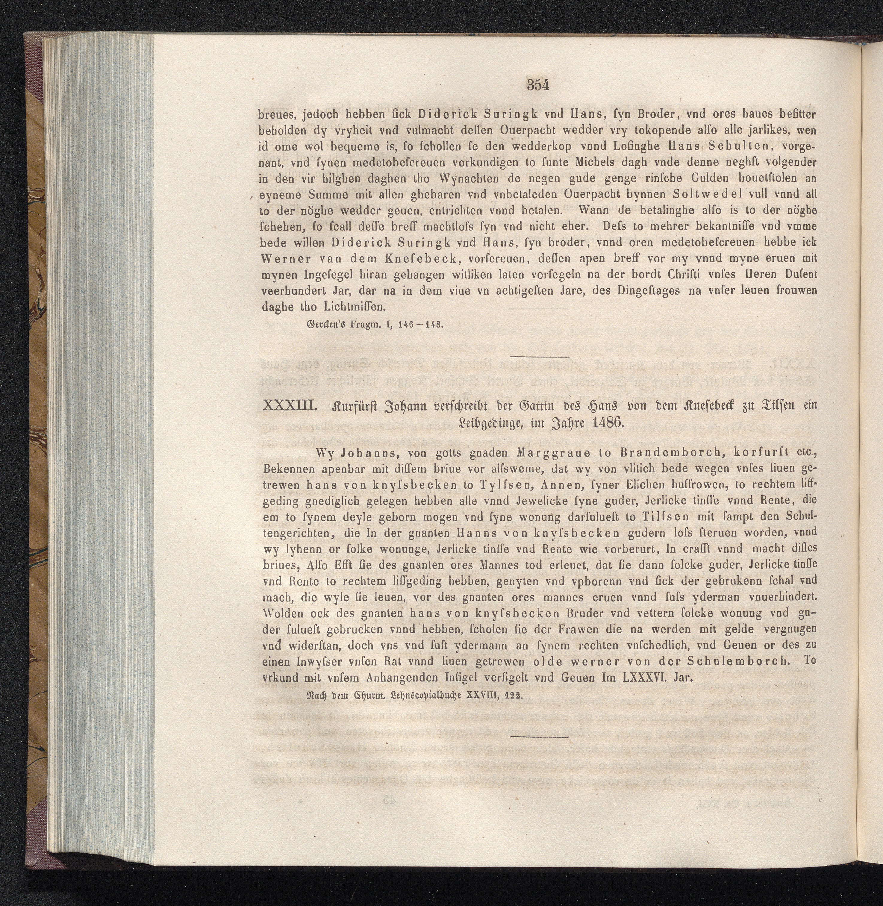 XXXIII. Kurfürst Johann verschreibt der Gattin des Hans von dem Knesebeck zu Tilsen[...]