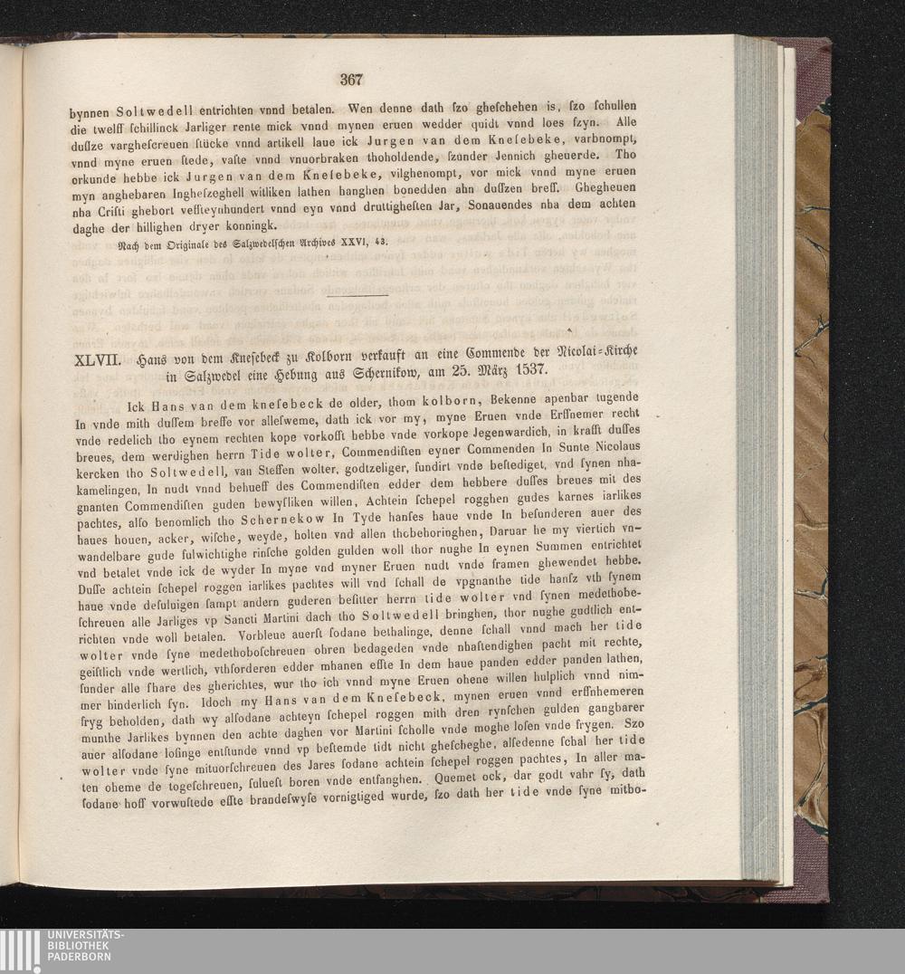XLVII. Hans von dem Knesebeck zu Kolborn verkauft an eine Commende der Nicolai-Kirche[...]
