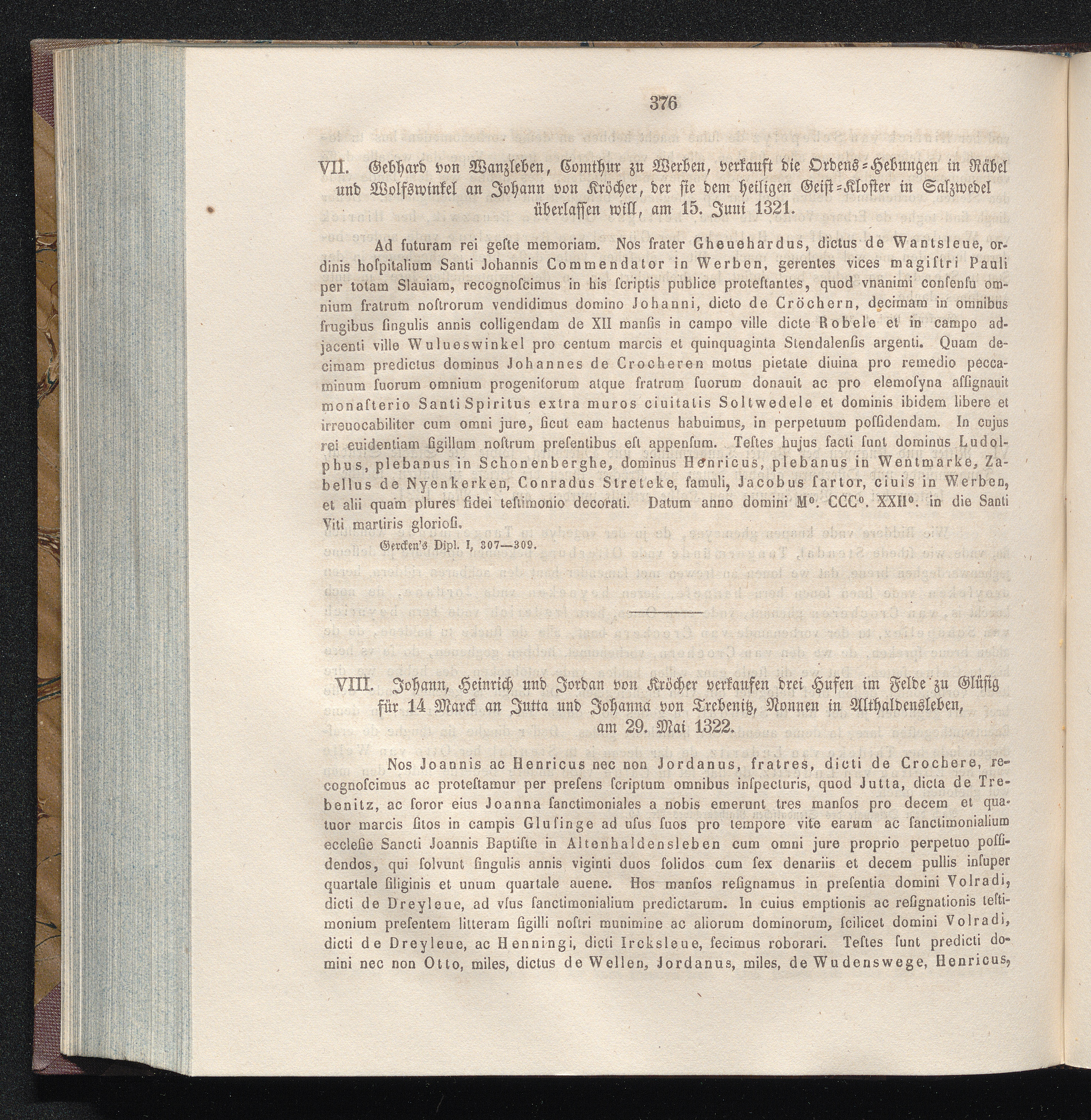 VIII. Johann, Heinrich und Jordan von Kröcher verkaufen drei Hufen im Felde zu Glüfig[...]