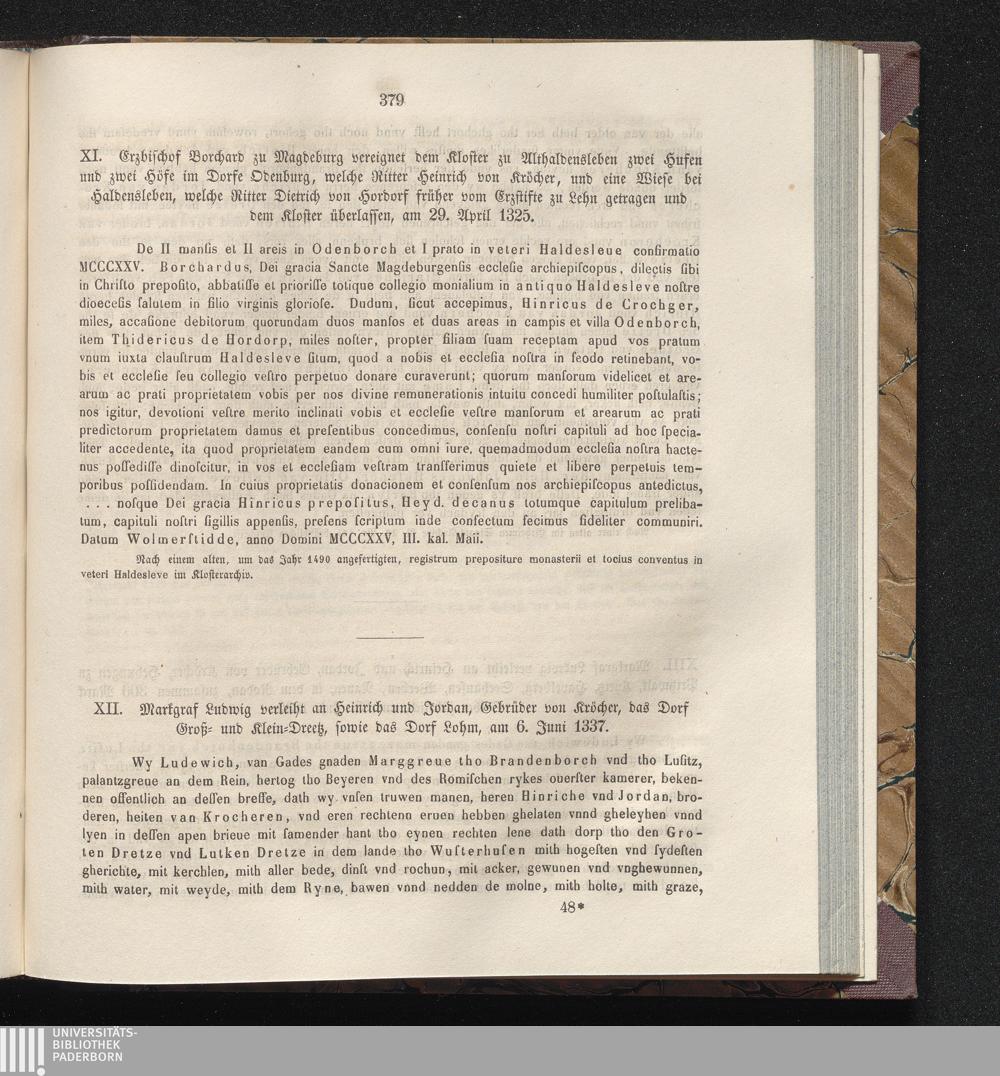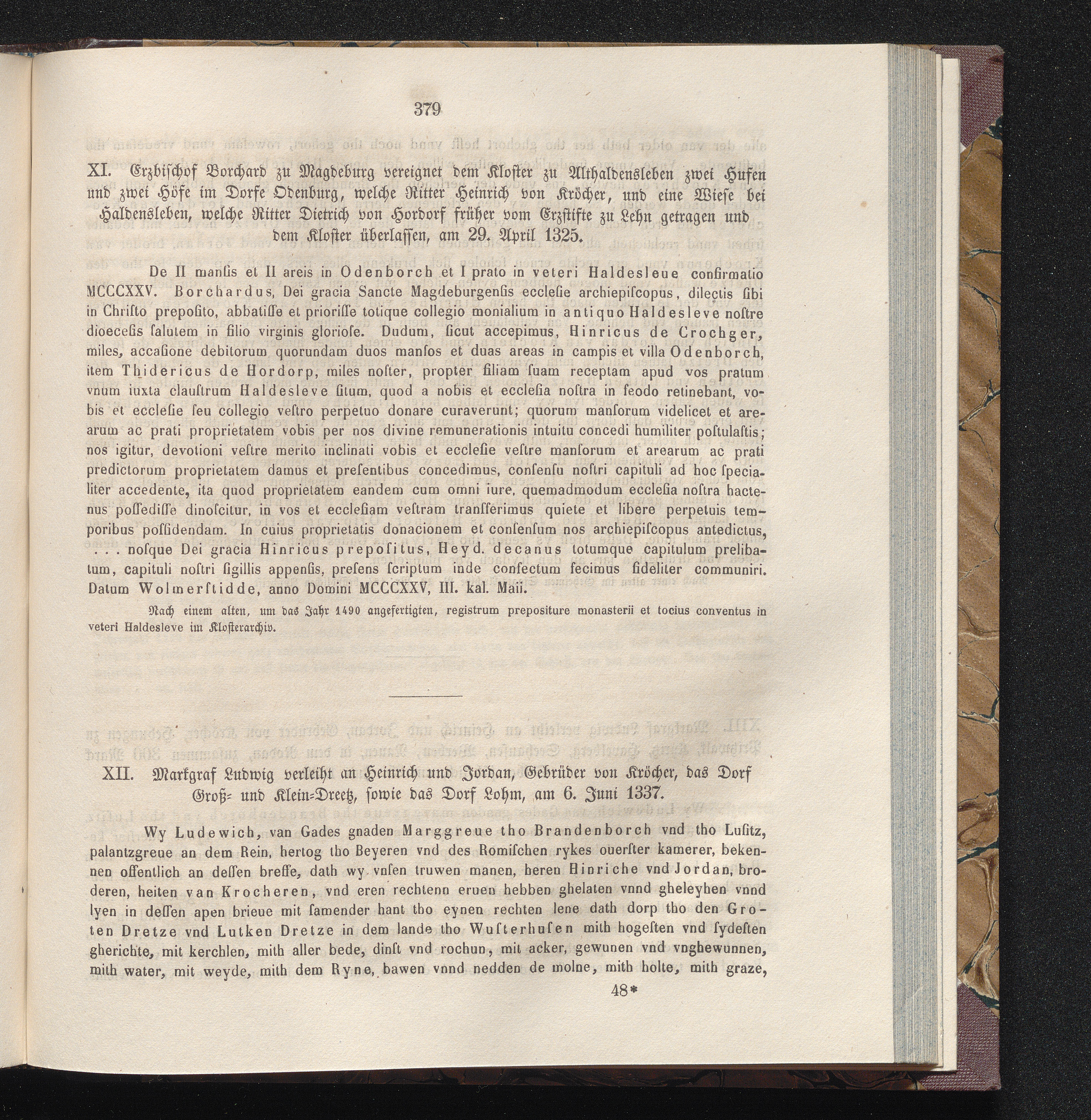XII. Markgraf Ludwig verleiht an Heinrich und Jordan, Gebrüder von Kröcher, das Dorf[...]