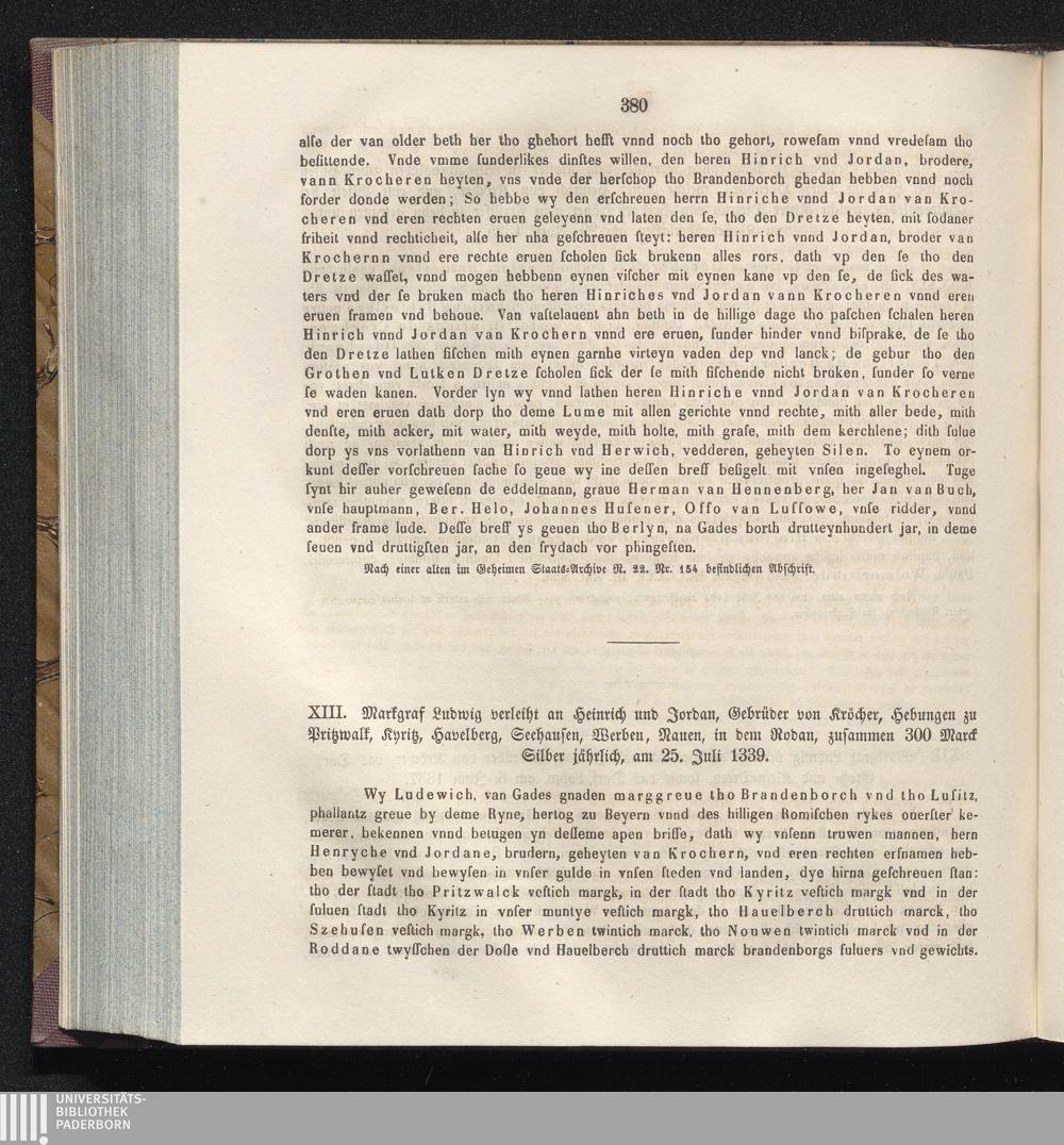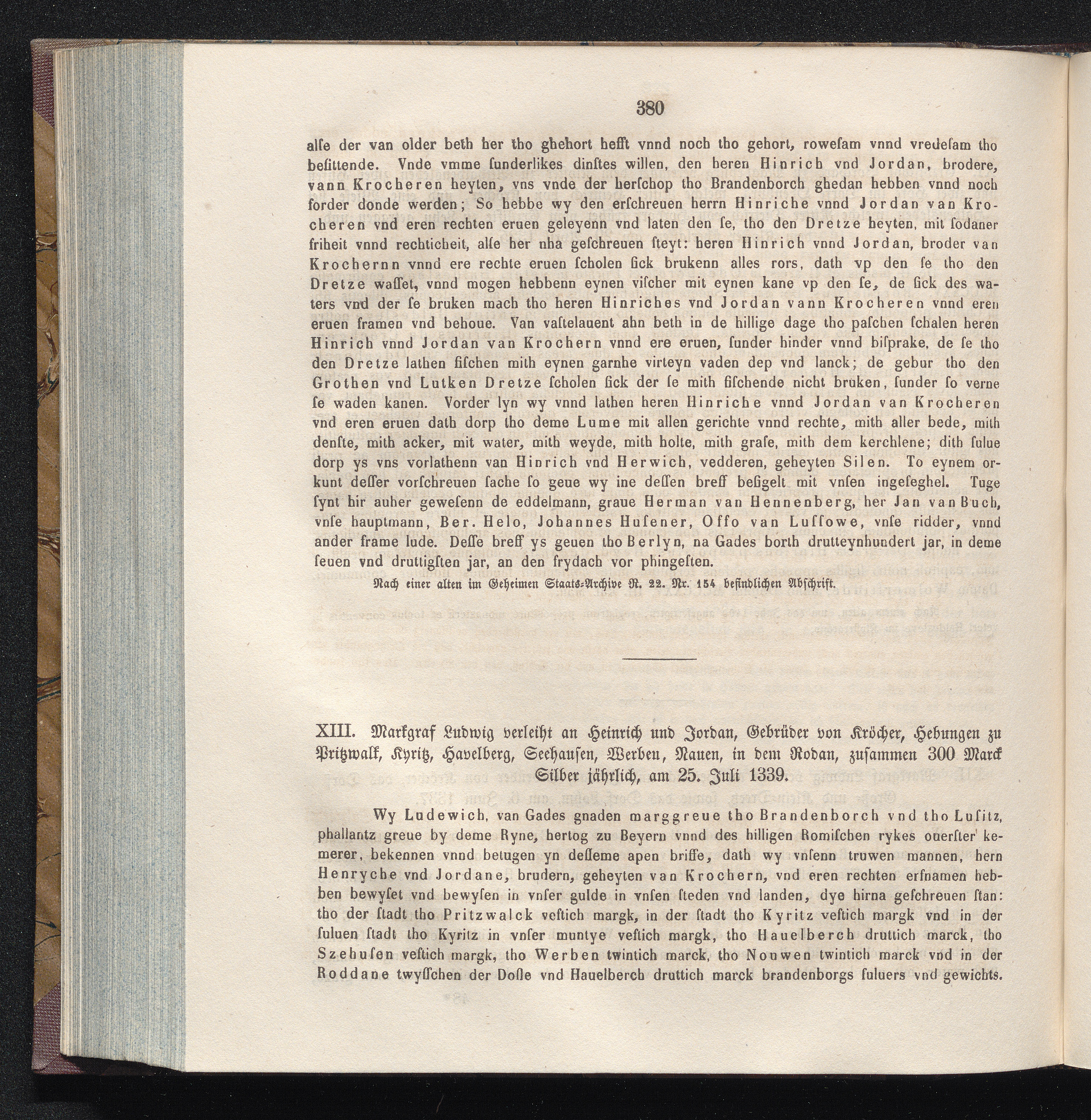 XIII. Markgraf Ludwig verleiht an Heinrich und Jordan, Gebrüder von Kröcher, Hebungen[...]