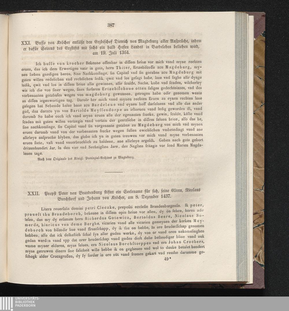 XXII. Propst Peter von Brandenburg stiftet ein Seelenamt für sich, seine Eltern,[...]
