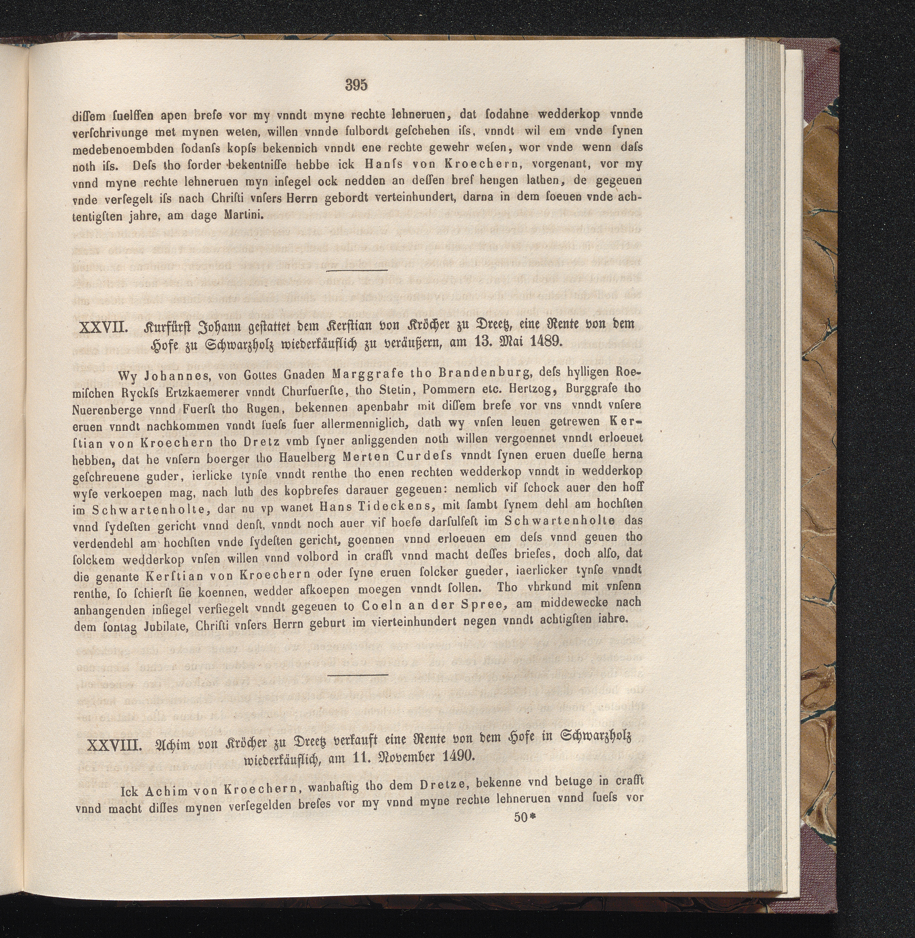 XXVIII. Achim von Kröcher zu Dreetz verkauft eine Rente von dem Hofe in Schwarzholz[...]