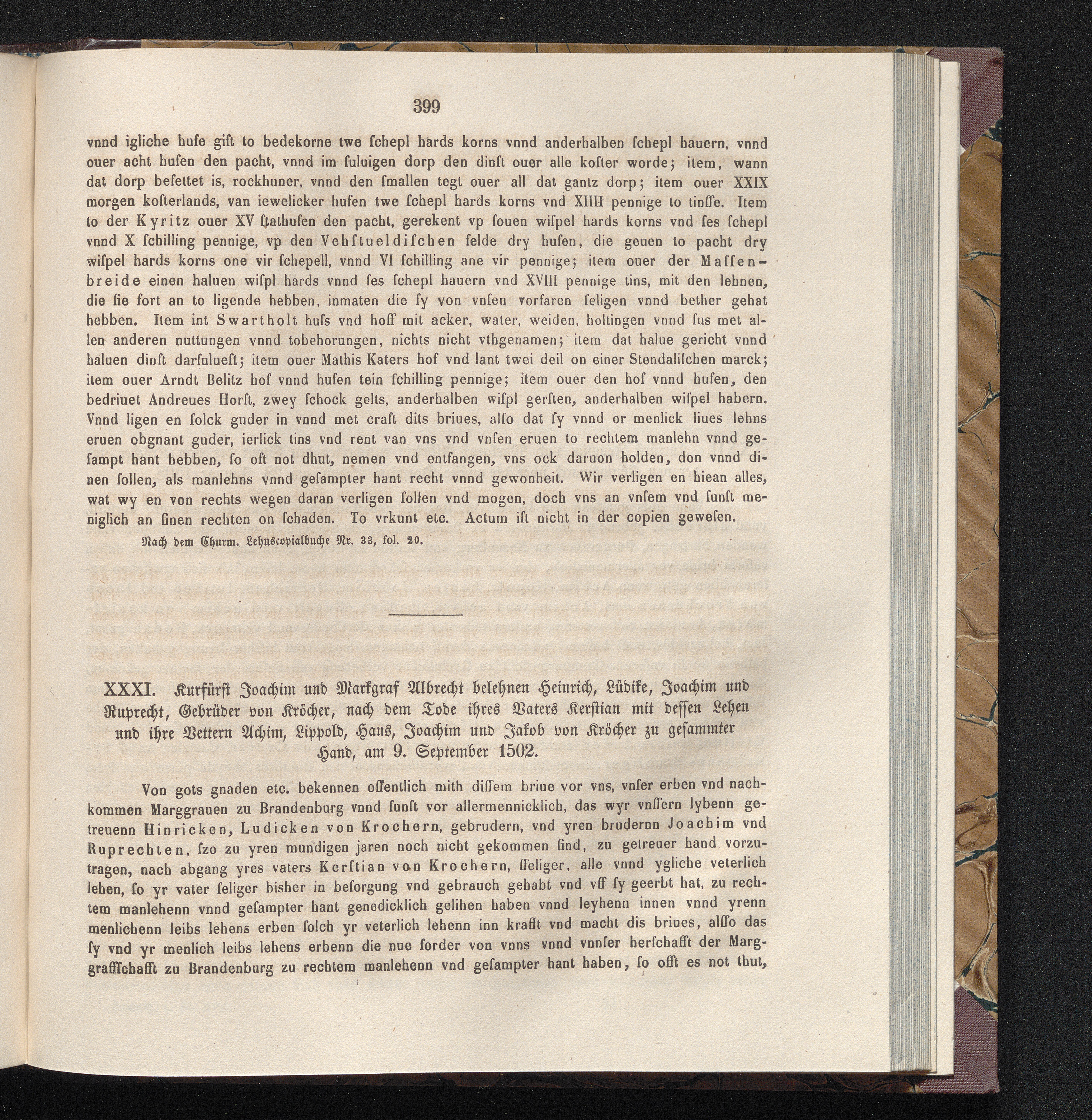 XXXI. Kurfürst Joachim und Markgraf Albrecht belehnen Heinrich, Lüdike, Joachim und[...]