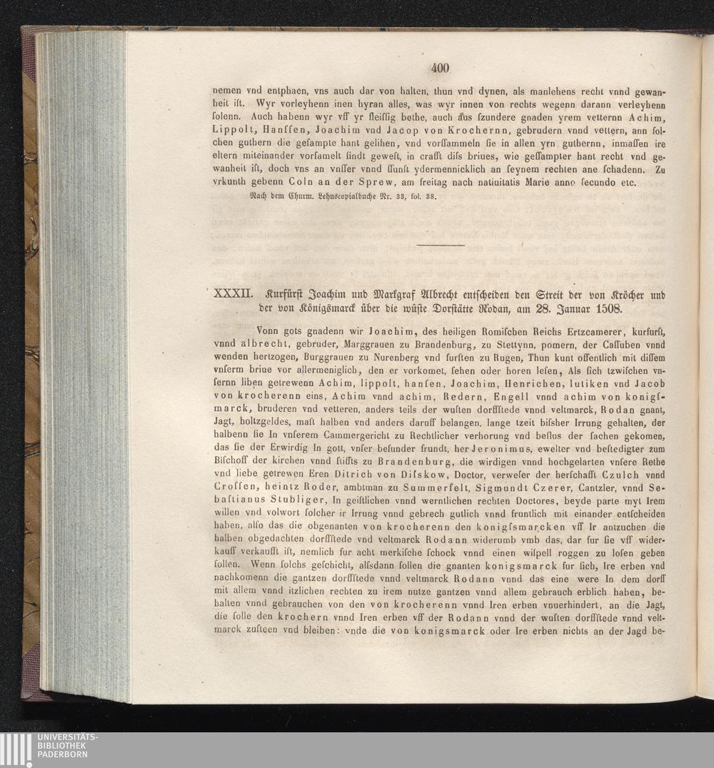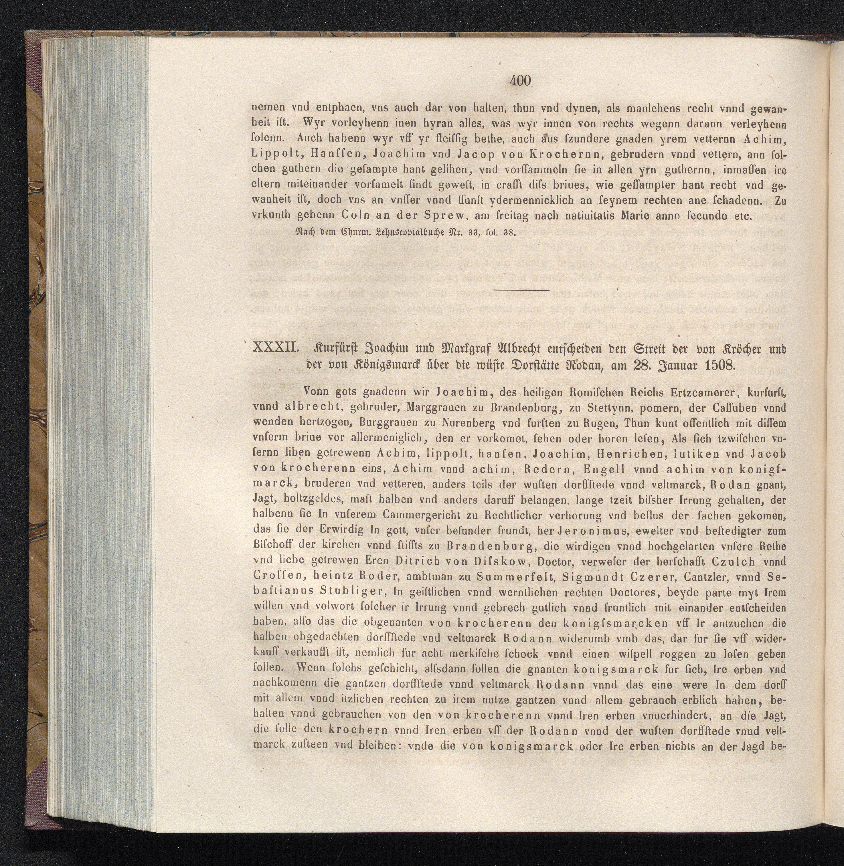 XXXII. Kurfürst Joachim und Markgraf Albrecht entscheiden den Streit der von Kröcher[...]