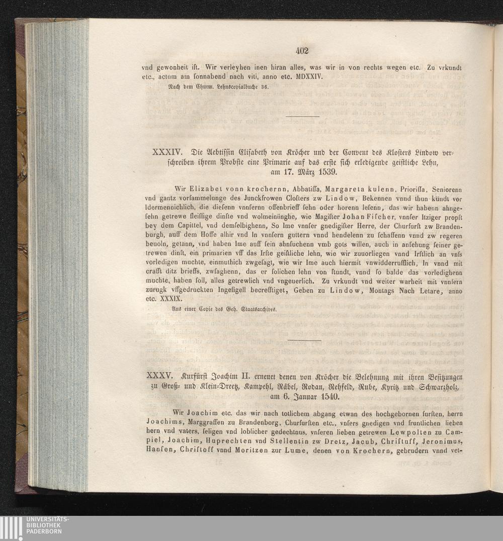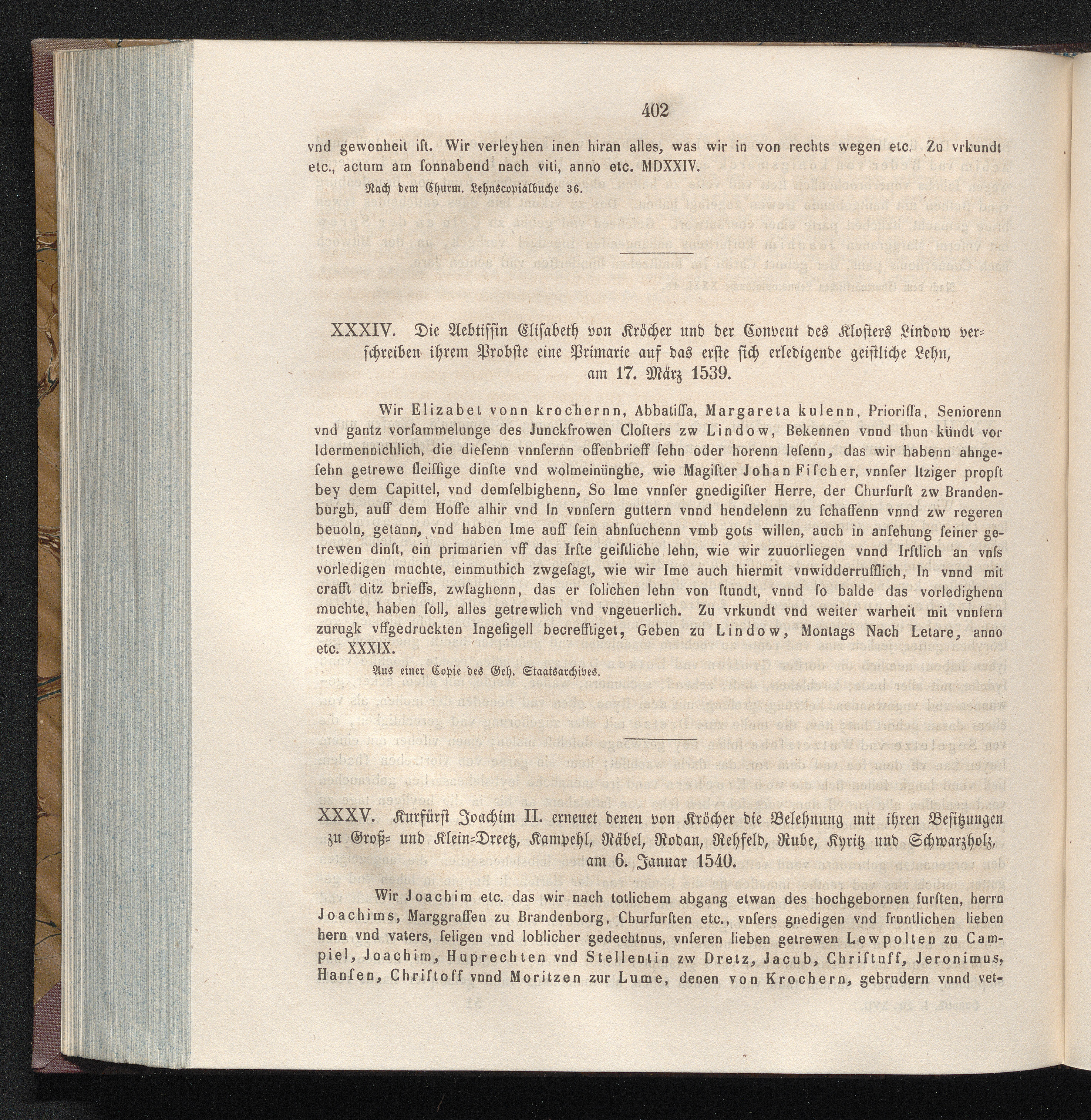 XXXV. Kurfürst Joachim II. erneuet denen von Kröcher die Belehnung mit ihren Besitzungen[...]