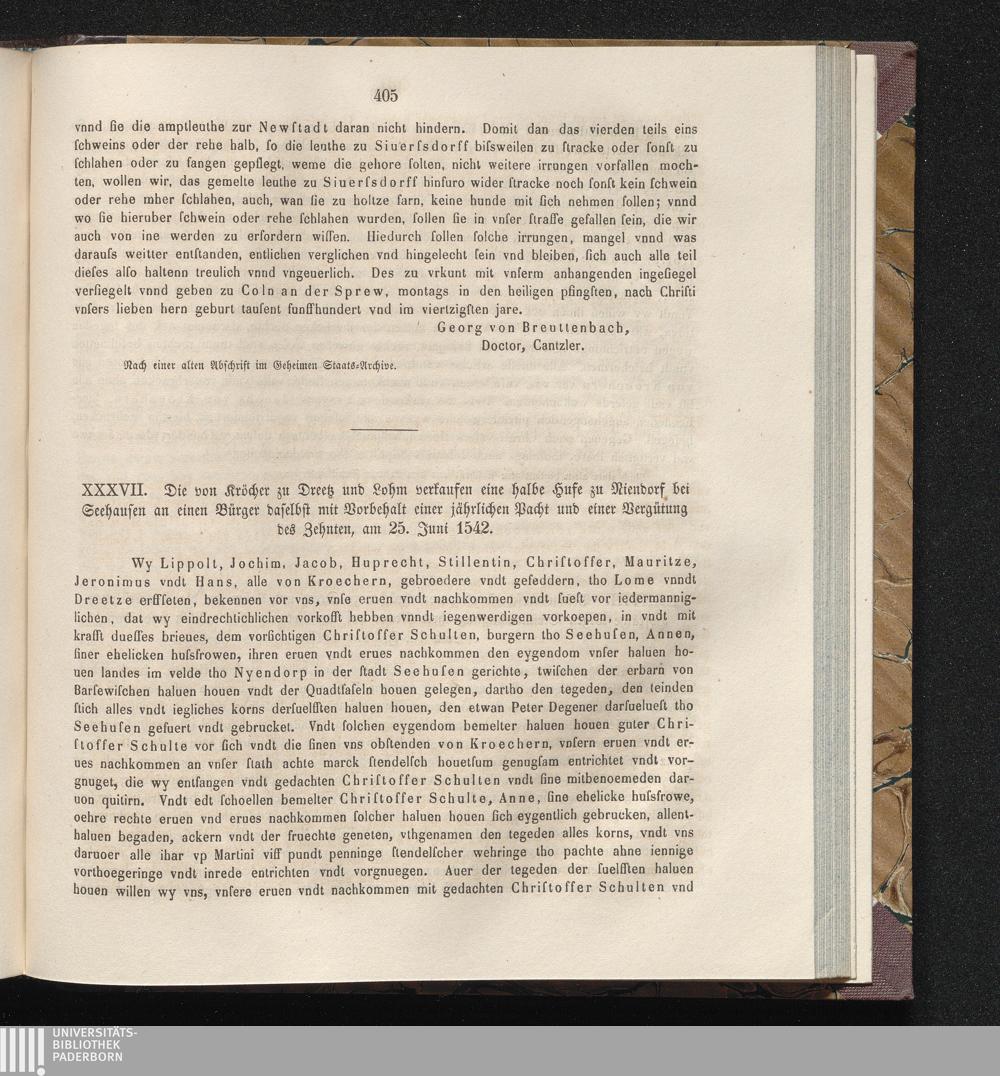 XXXVII. Die von Kröcher zu Dreetz und Lohm verkaufen eine halbe Hufe zu Niendorf[...]