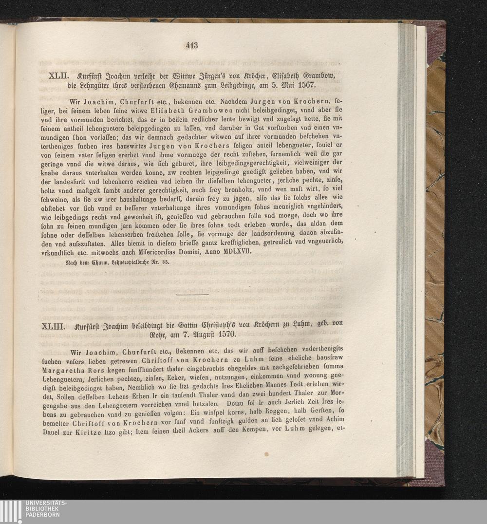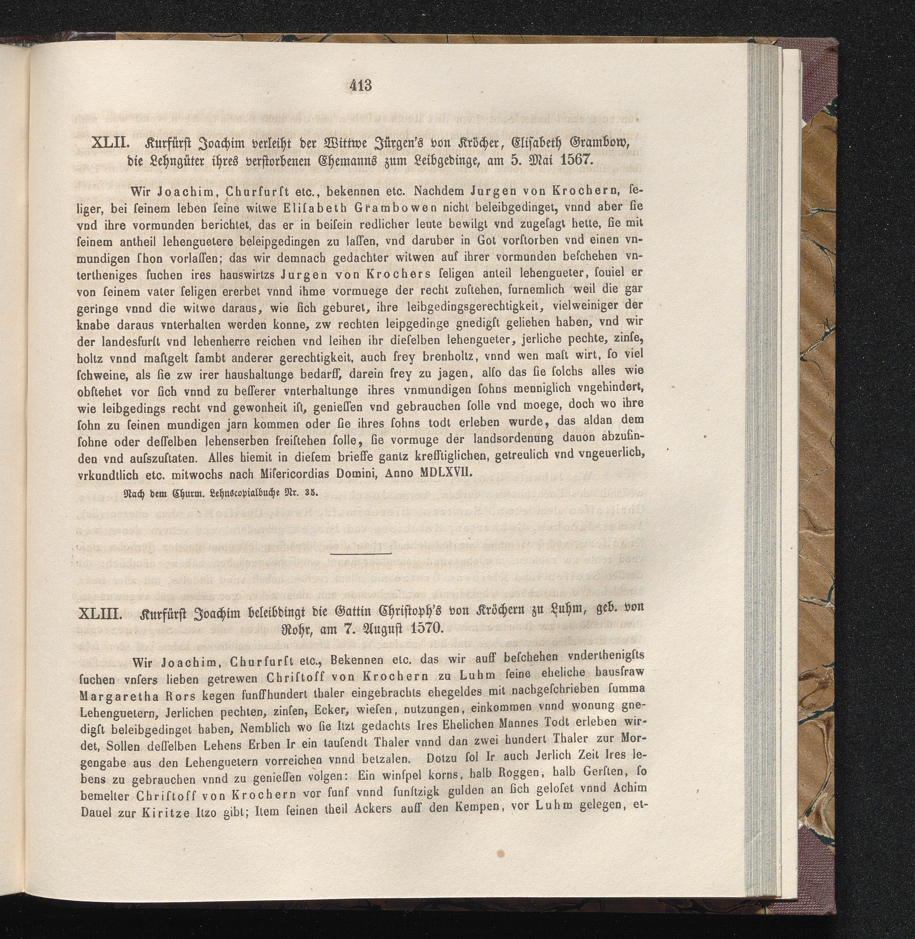 XLIII. Kurfürst Joachim beleibdingt die Gattin Christoph’s von Kröchern zu Luhm,[...]