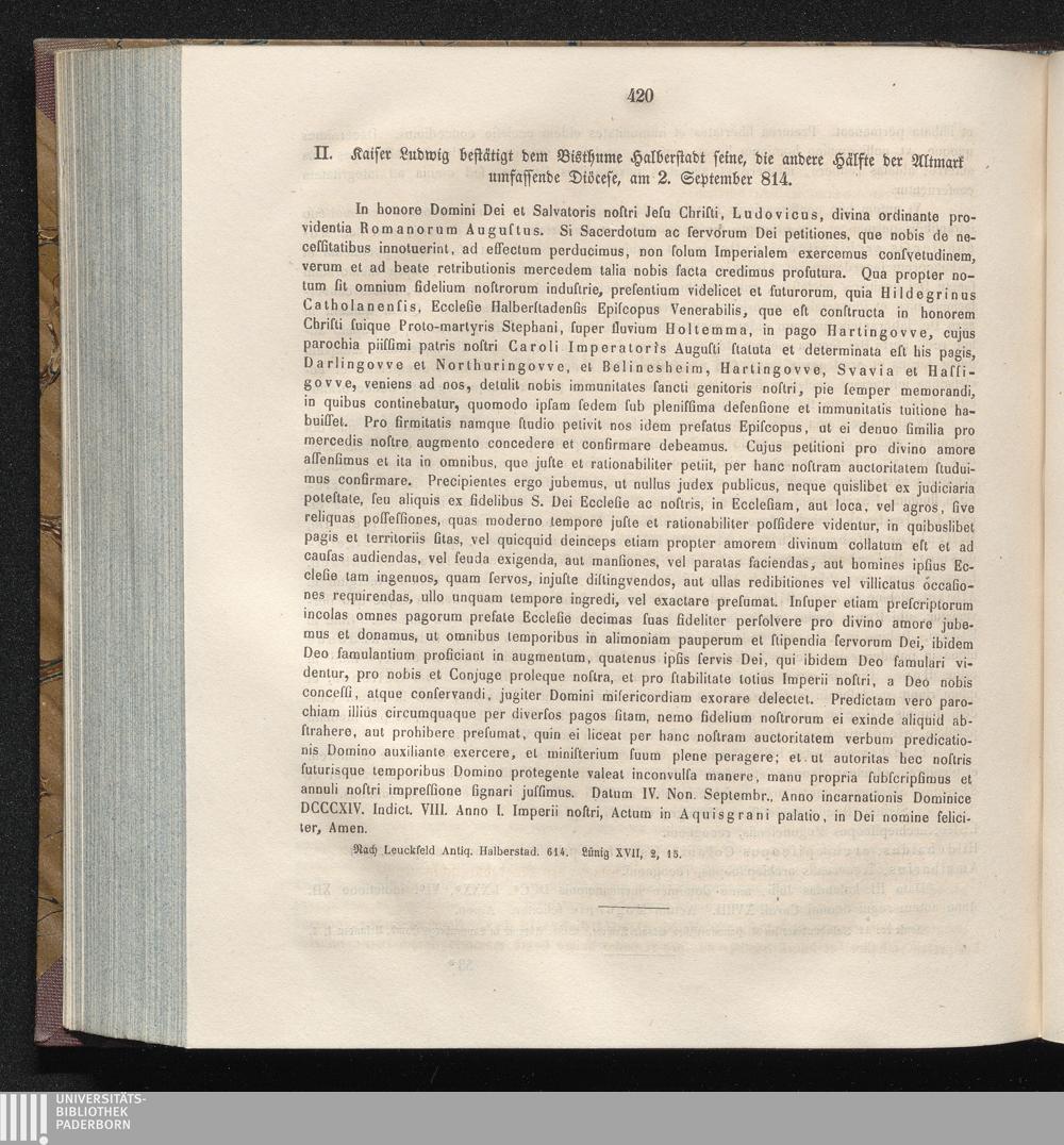 II. Kaiser Ludwig bestätigt dem Bisthume Halberstadt seine, die andere Hälfte der[...]