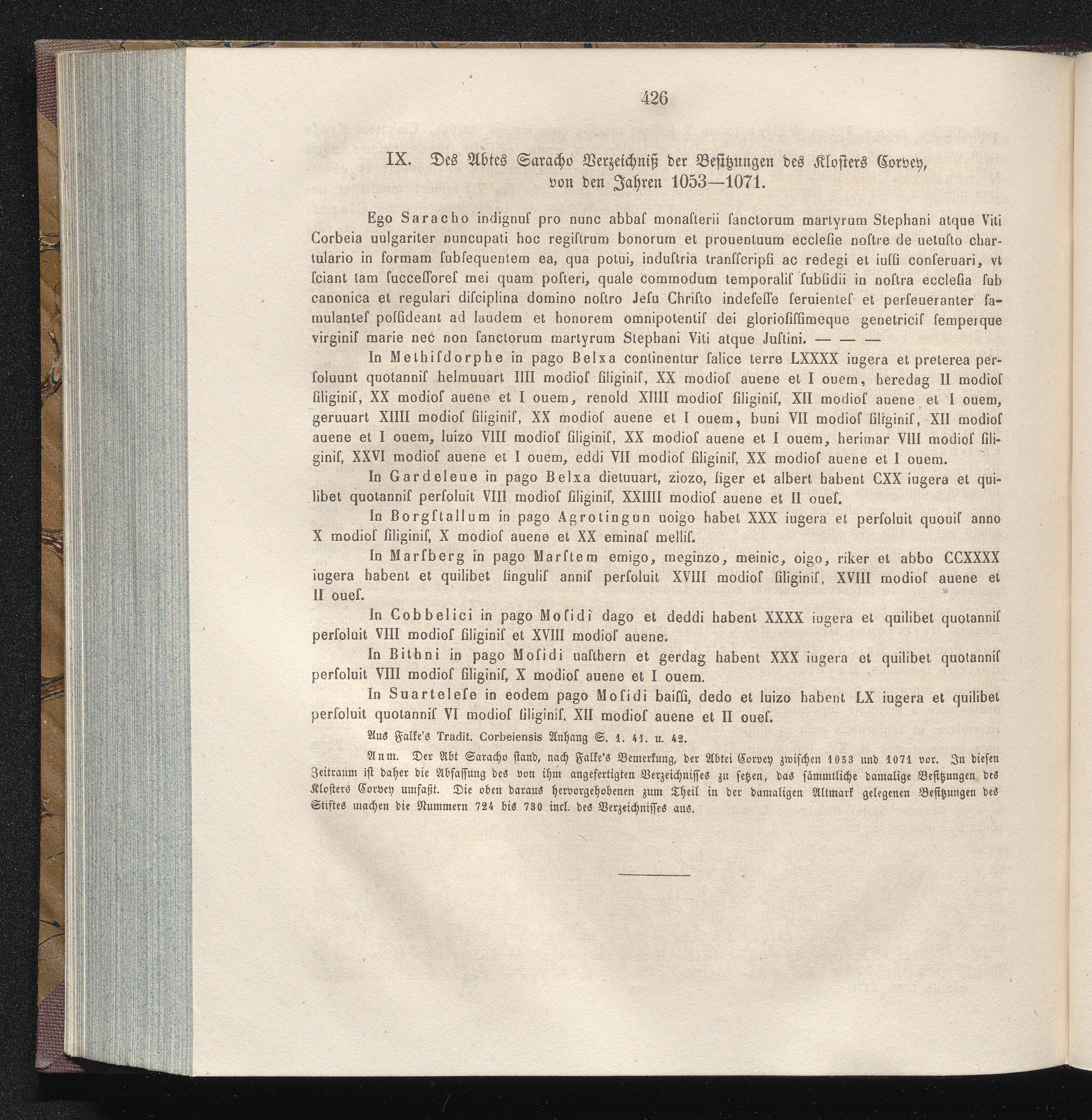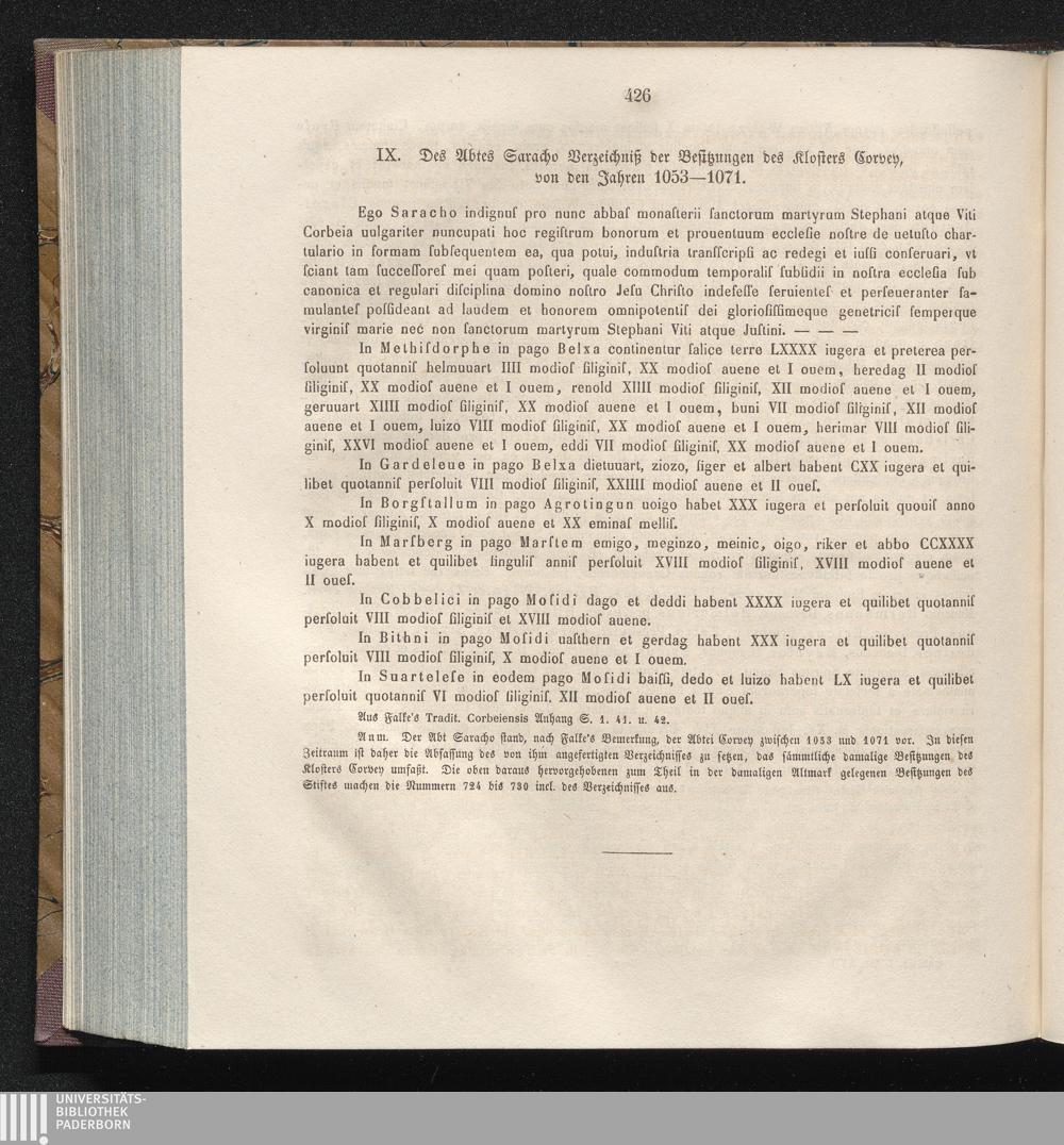 IX. Des Abtes Saracho Verzeichniß der Besitzungen des Klosters Corvey, von den Jahren[...]