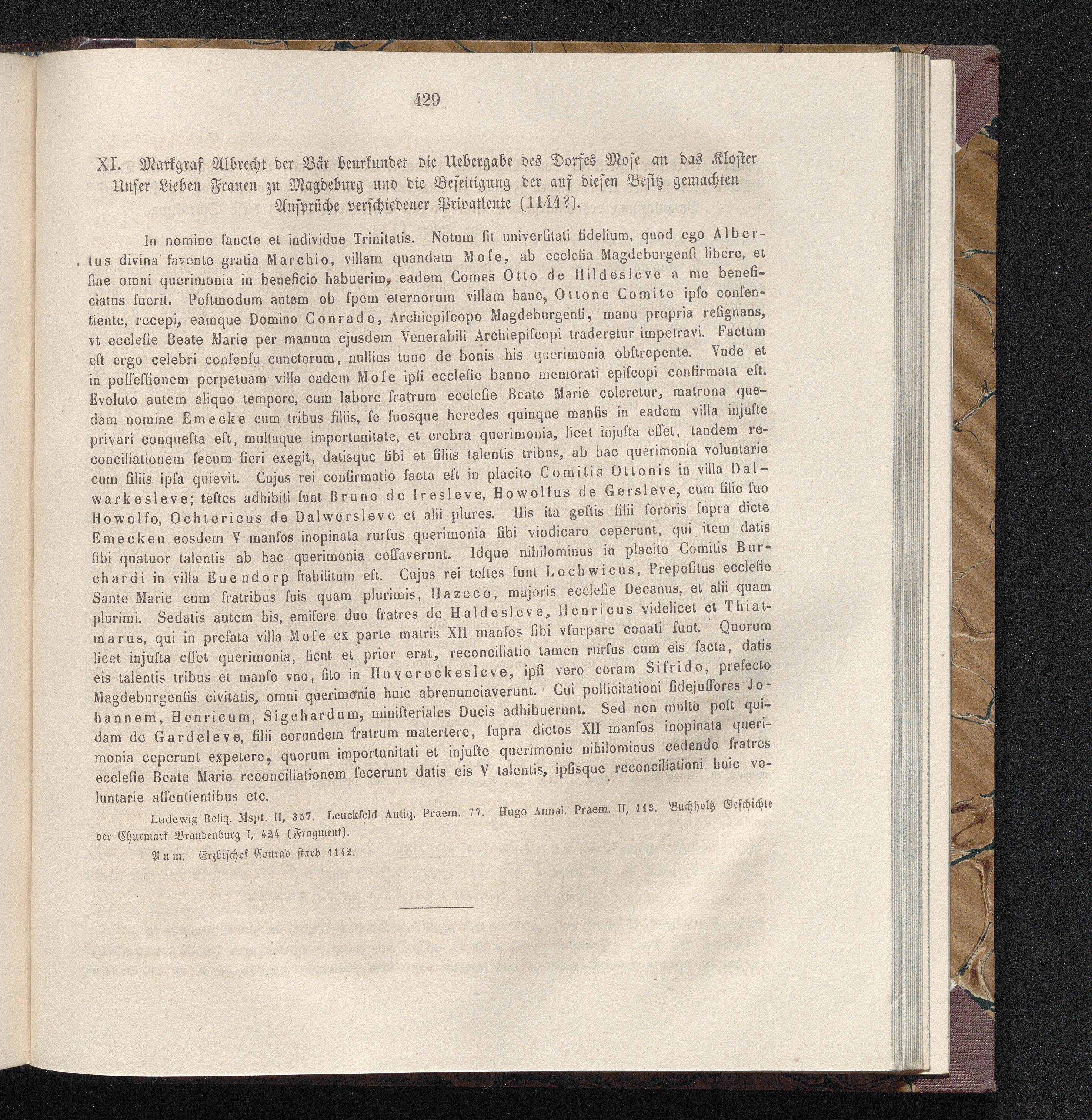 XI. Markgraf Albrecht der Bär beurkundet die Uebergabe des Dorfes Mose an das Kloster[...]