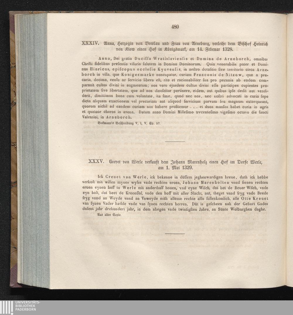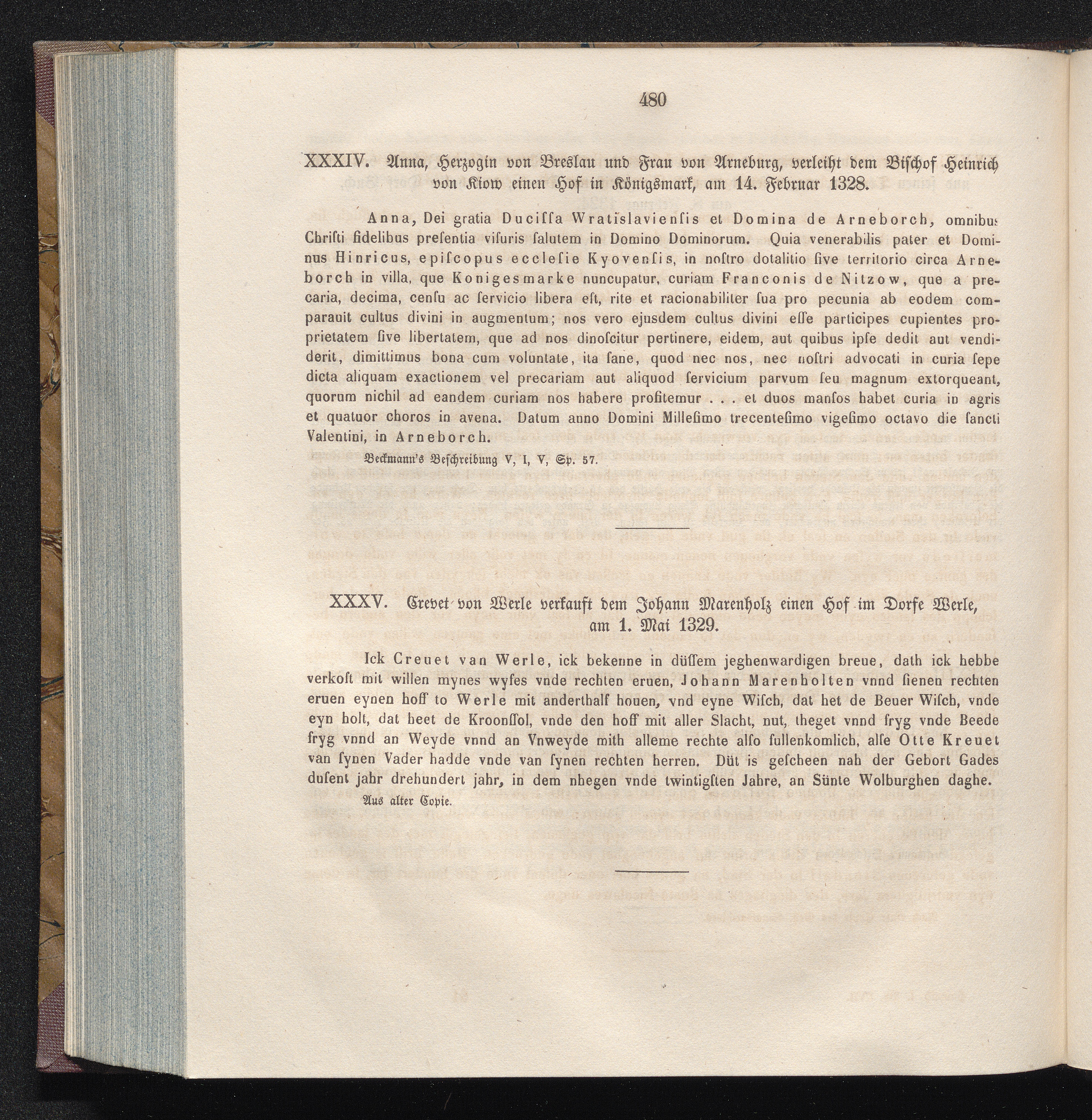 XXXV. Crevet von Werle verkauft dem Johann Marenholz einen Hof im Dorfe Werle, am[...]