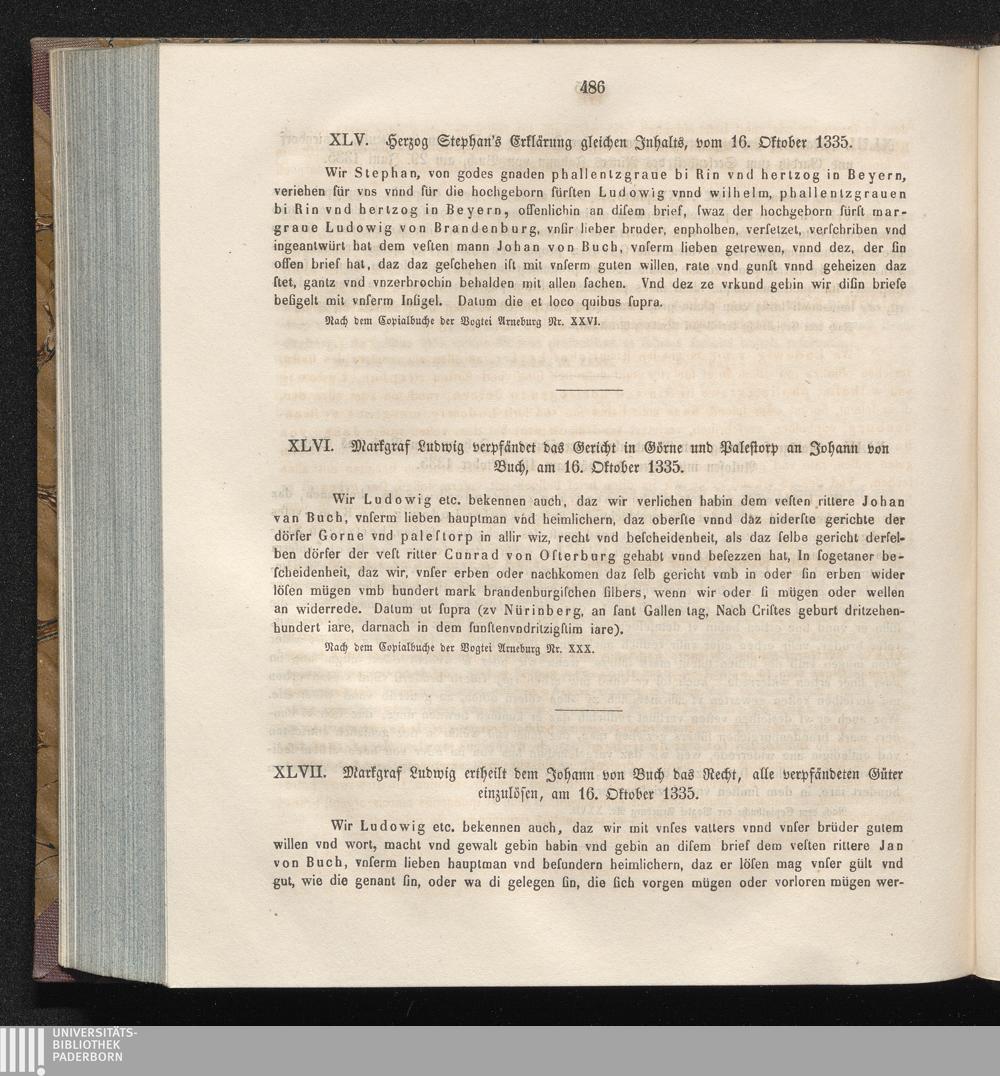 XLVII. Markgraf Ludwig ertheilt dem Johann von Buch das Recht, alle verpfändeten[...]