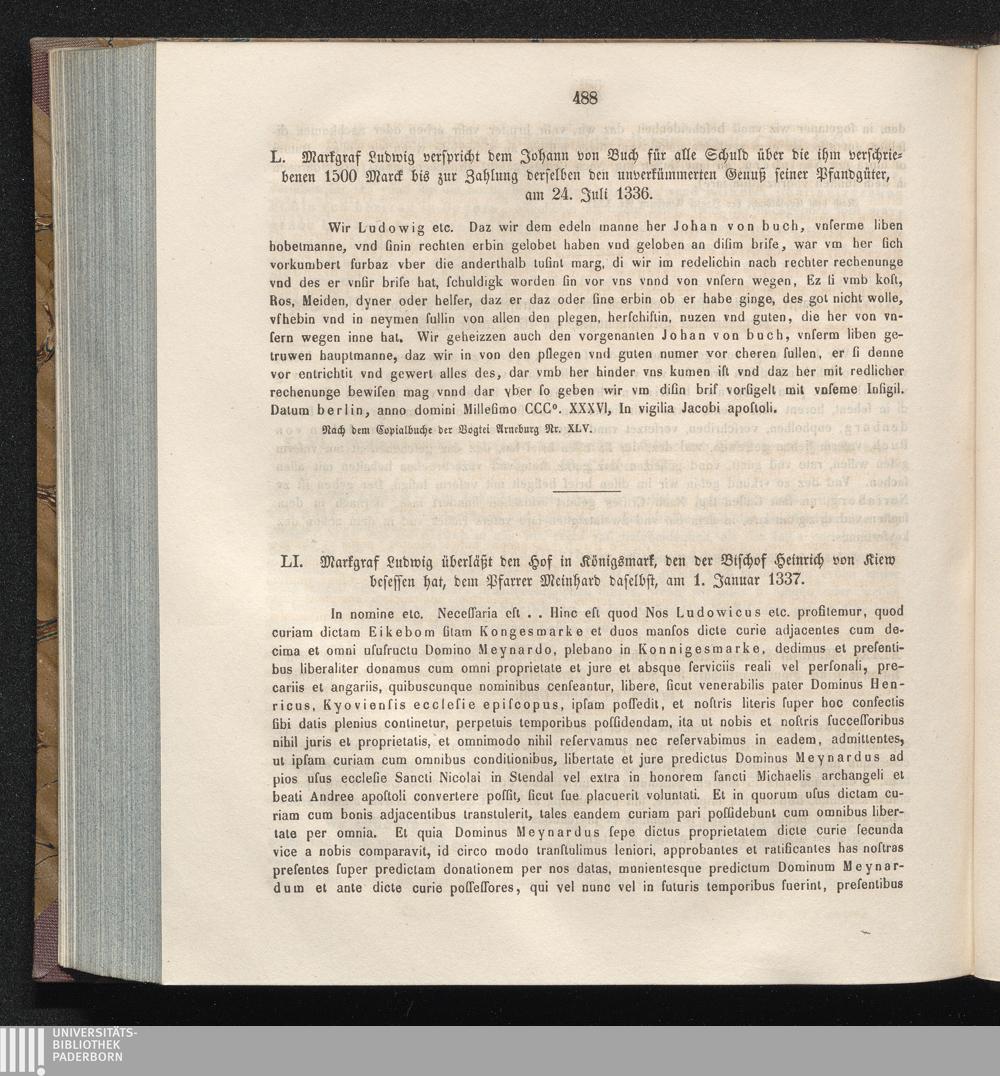 LI. Markgraf Ludwig überläßt den Hof in Königsmark, den der Bischof Heinrich von[...]