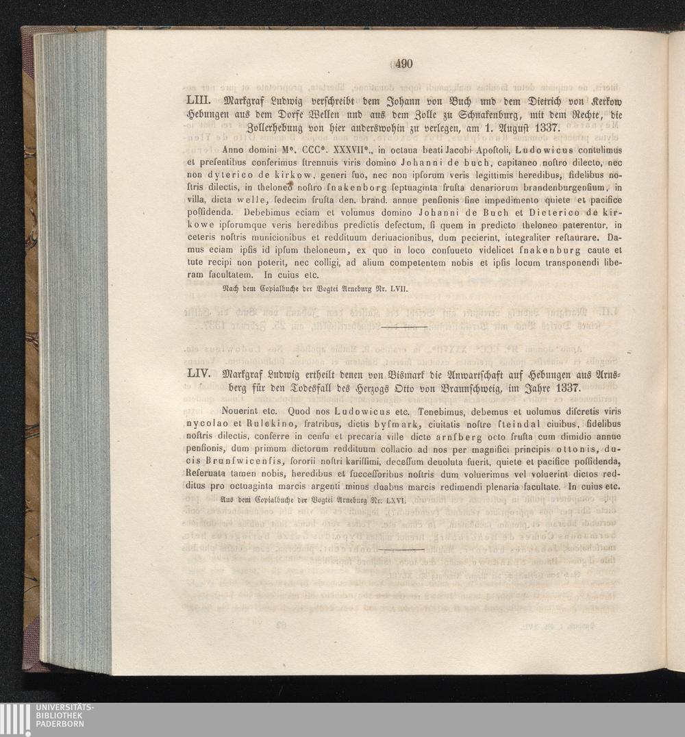 LIV. Markgraf Ludwig ertheilt denen von Bismark die Anwartschaft auf Hebungen aus[...]