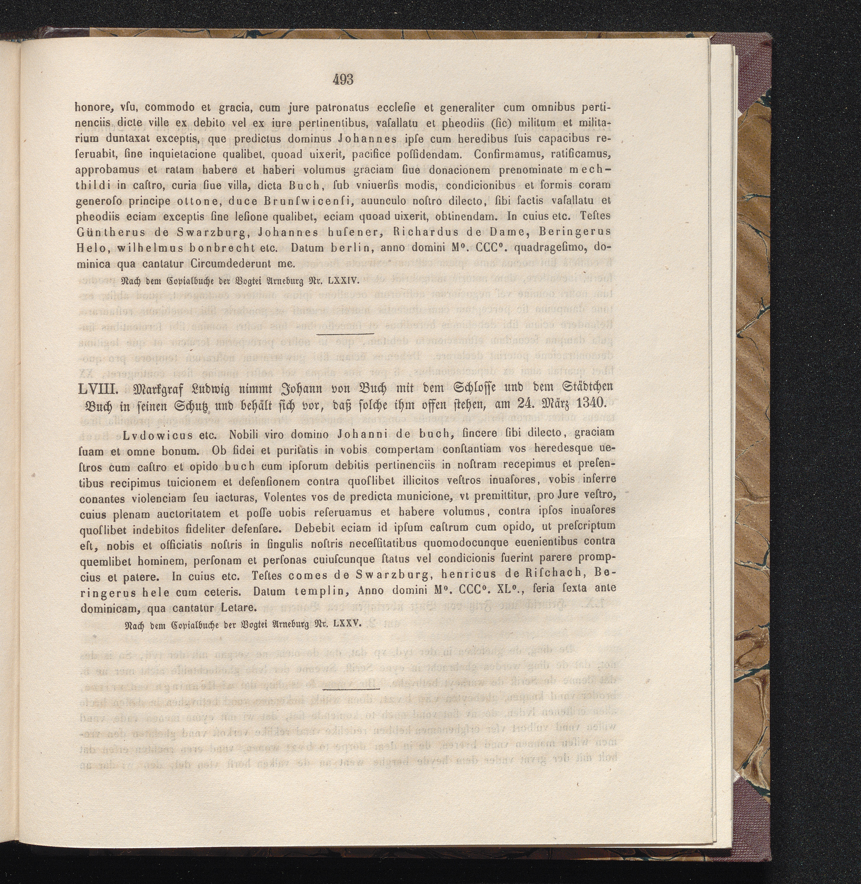 LVIII. Markgraf Ludwig nimmt Johann von Buch mit dem Schlosse und dem Städtchen Buch[...]