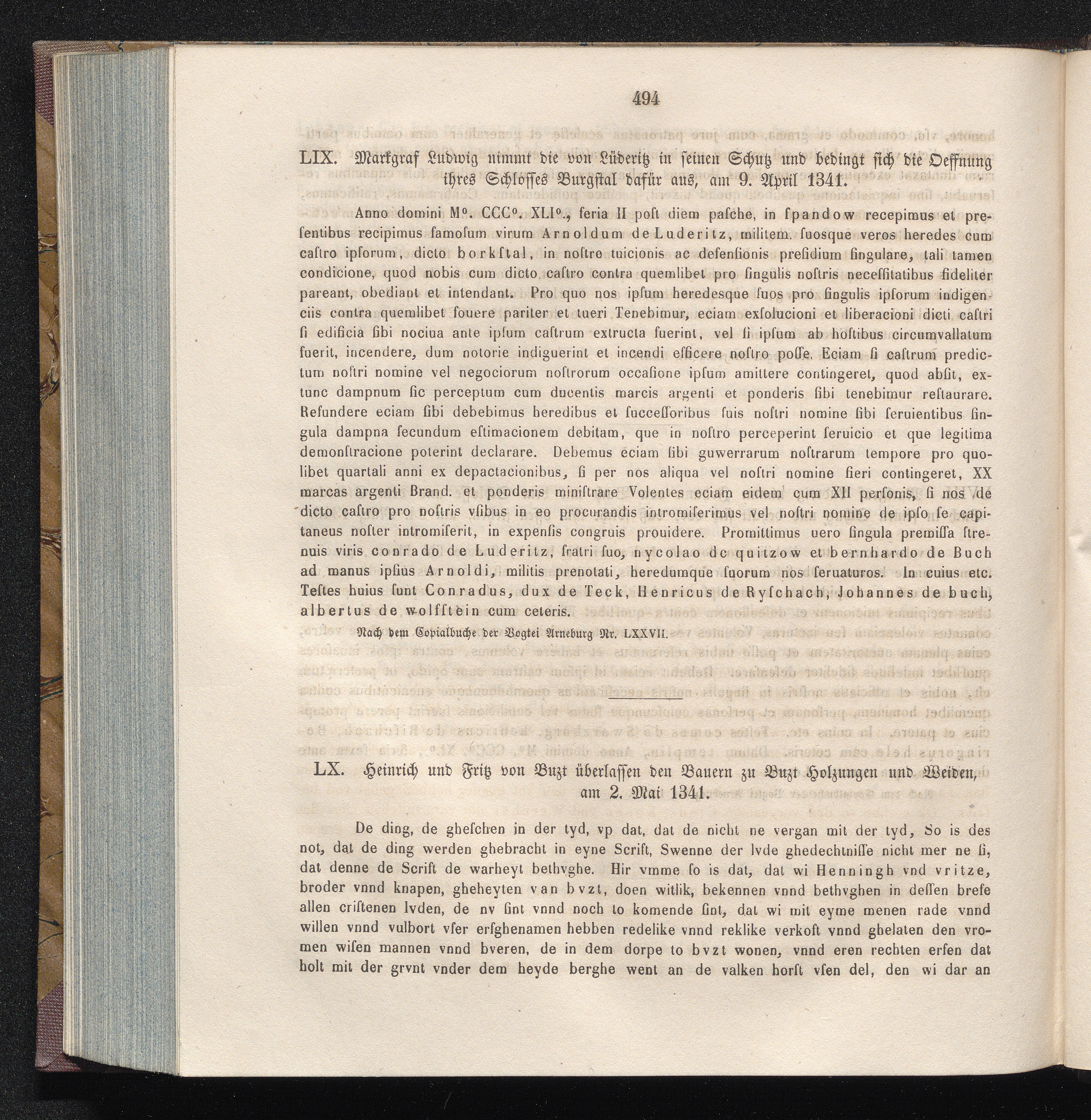 LX. Heinrich und Fritz von Buzt überlassen den Bauern zu Buzt Holzungen und Weiden,[...]