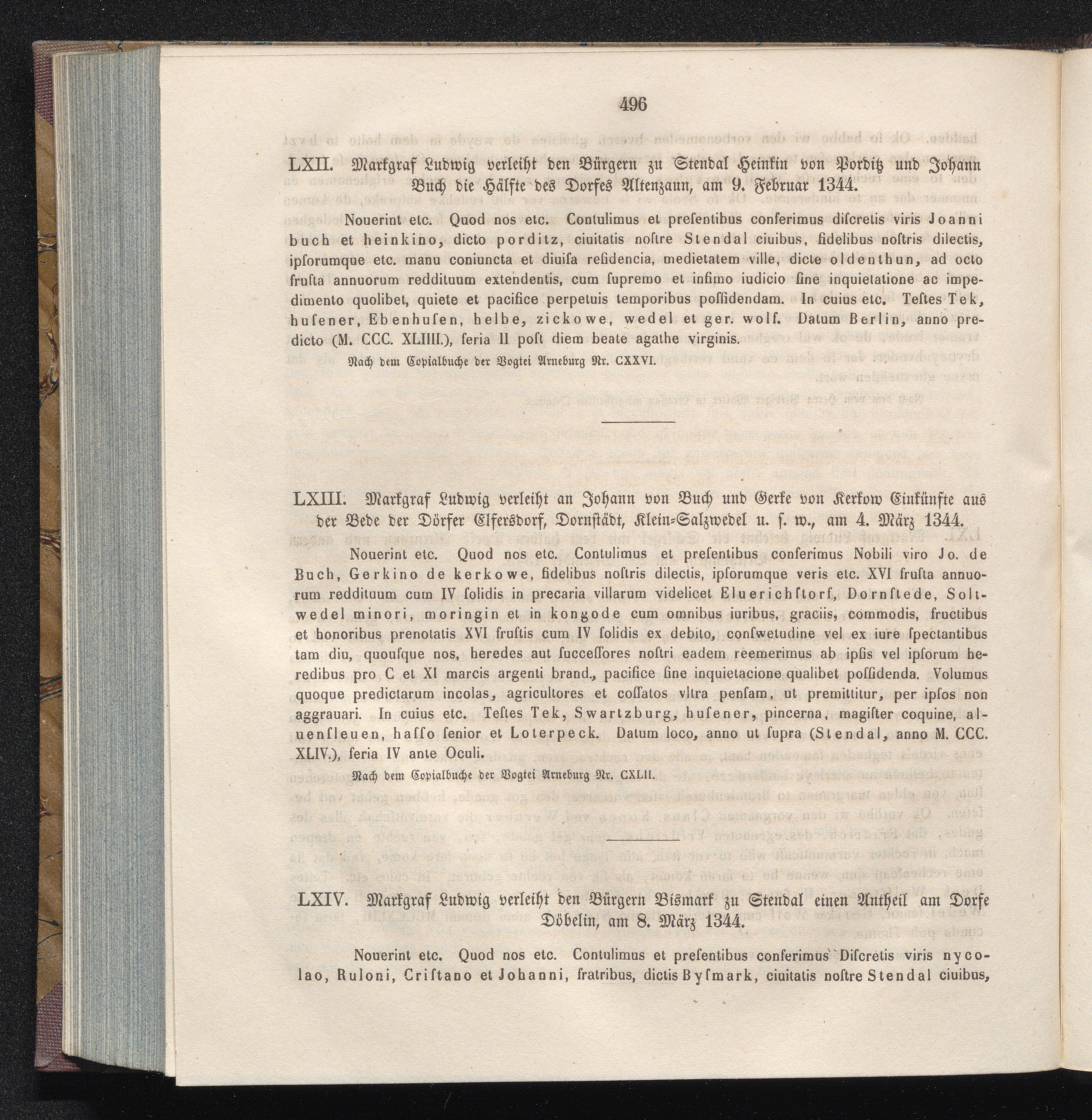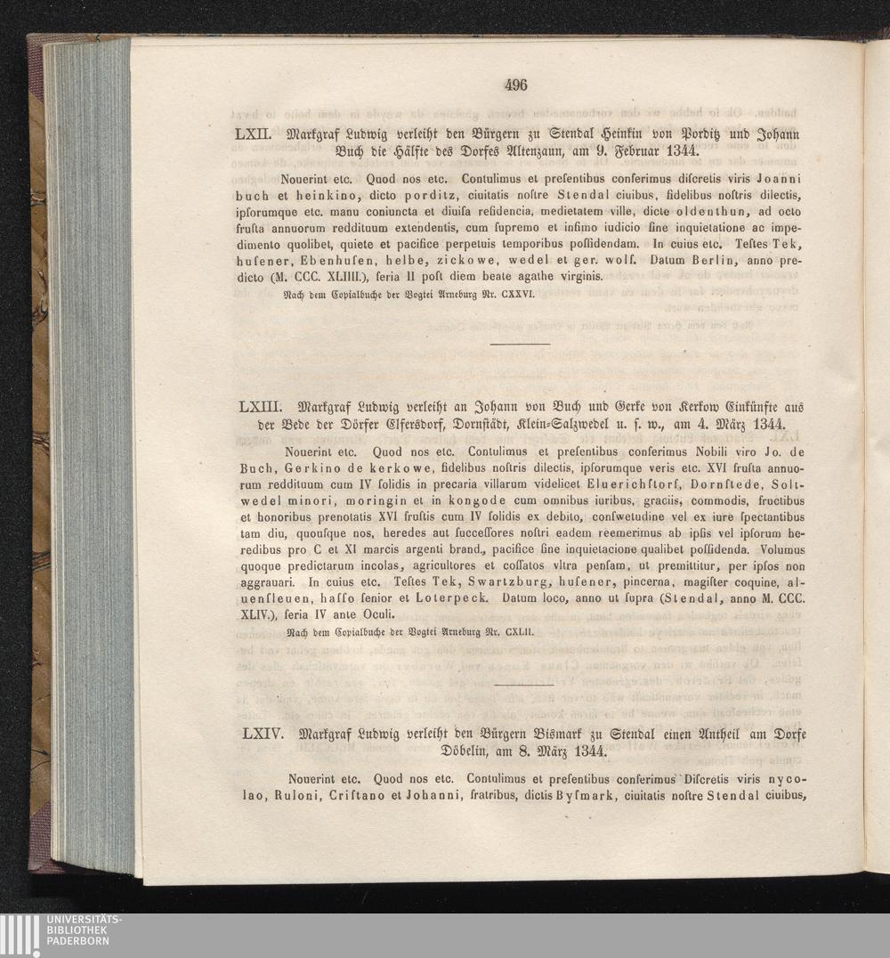 LXIV. Markgraf Ludwig verleiht den Bürgern Bismark zu Stendal einen Antheil am Dorfe[...]