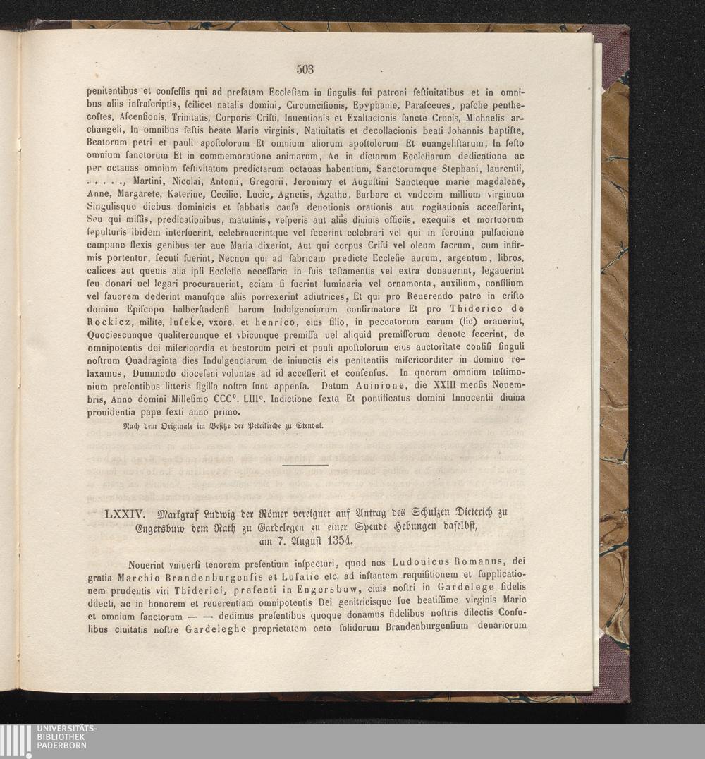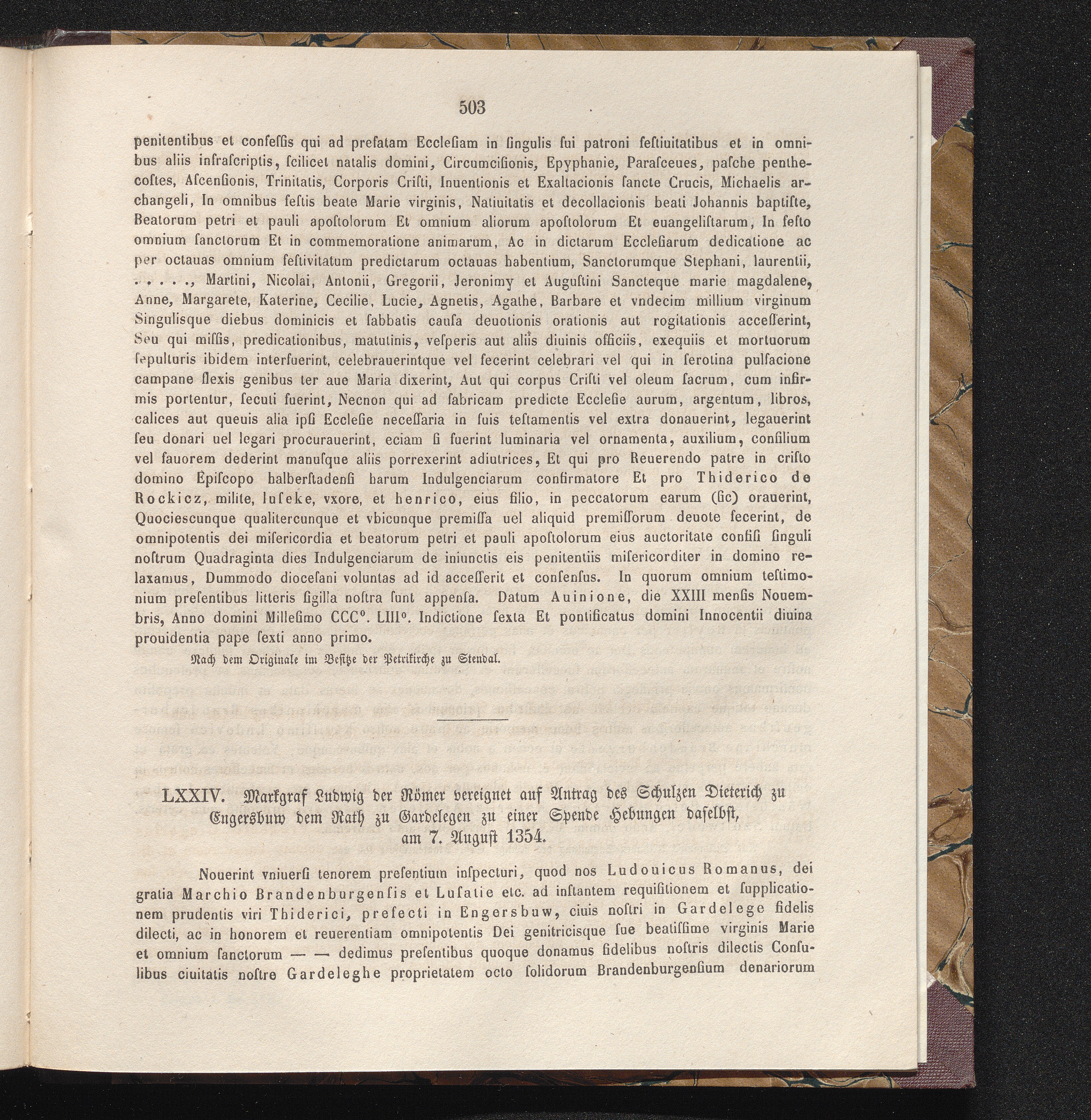 LXXIV. Markgraf Ludwig der Römer vereignet auf Antrag des Schulzen Dieterich zu Engersbuw[...]