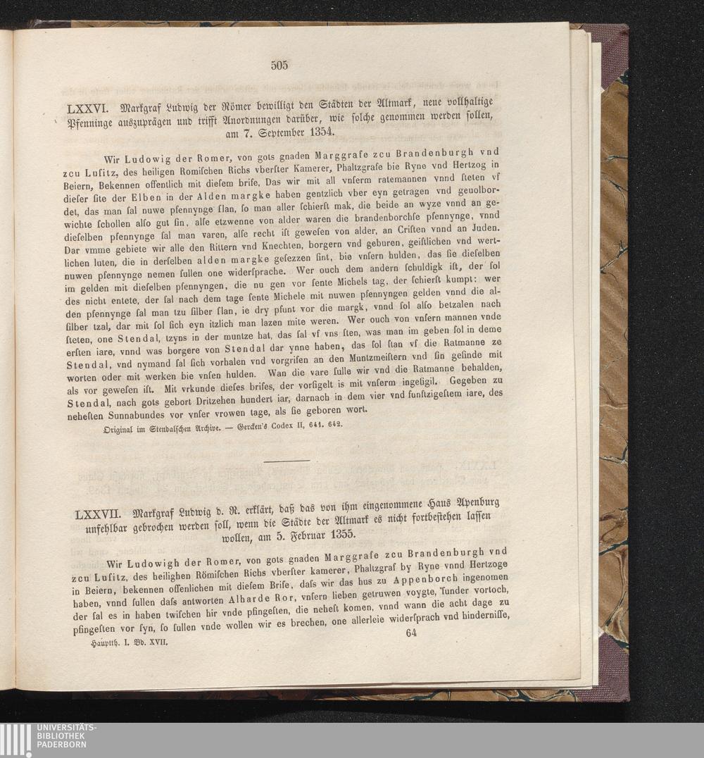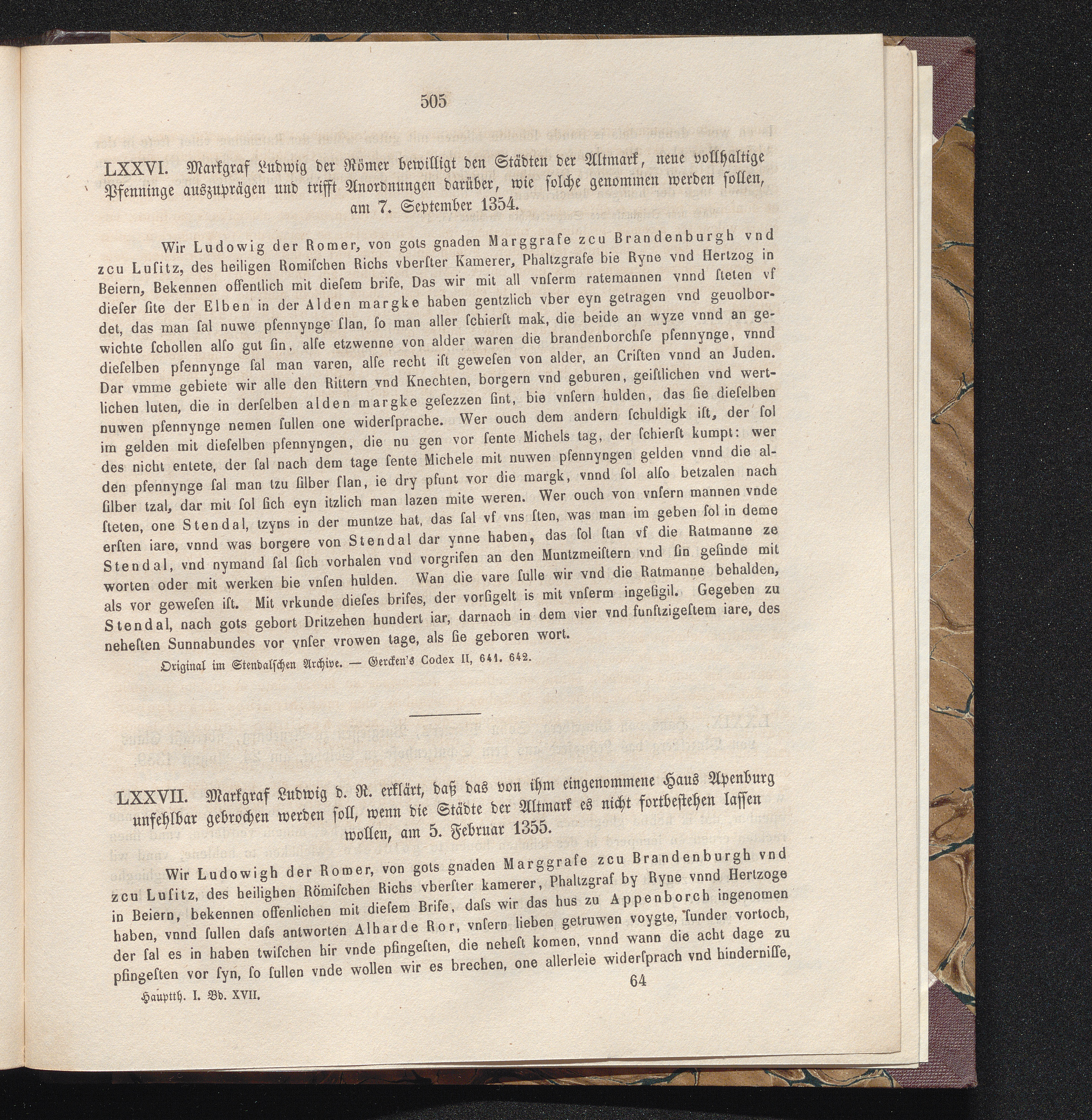 LXXVII. Markgraf Ludwig d. R. erklärt, daß das von ihm eingenommene Haus Apenburg[...]