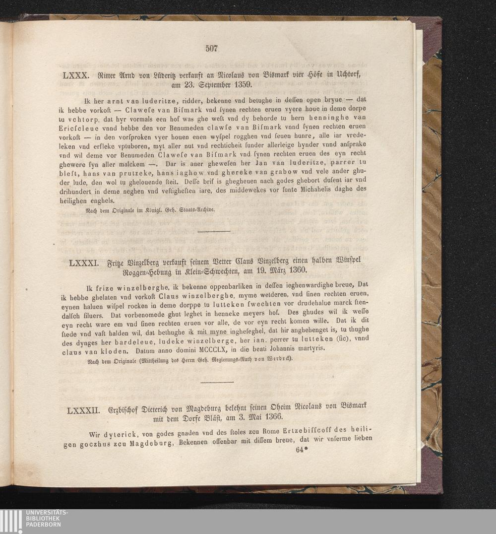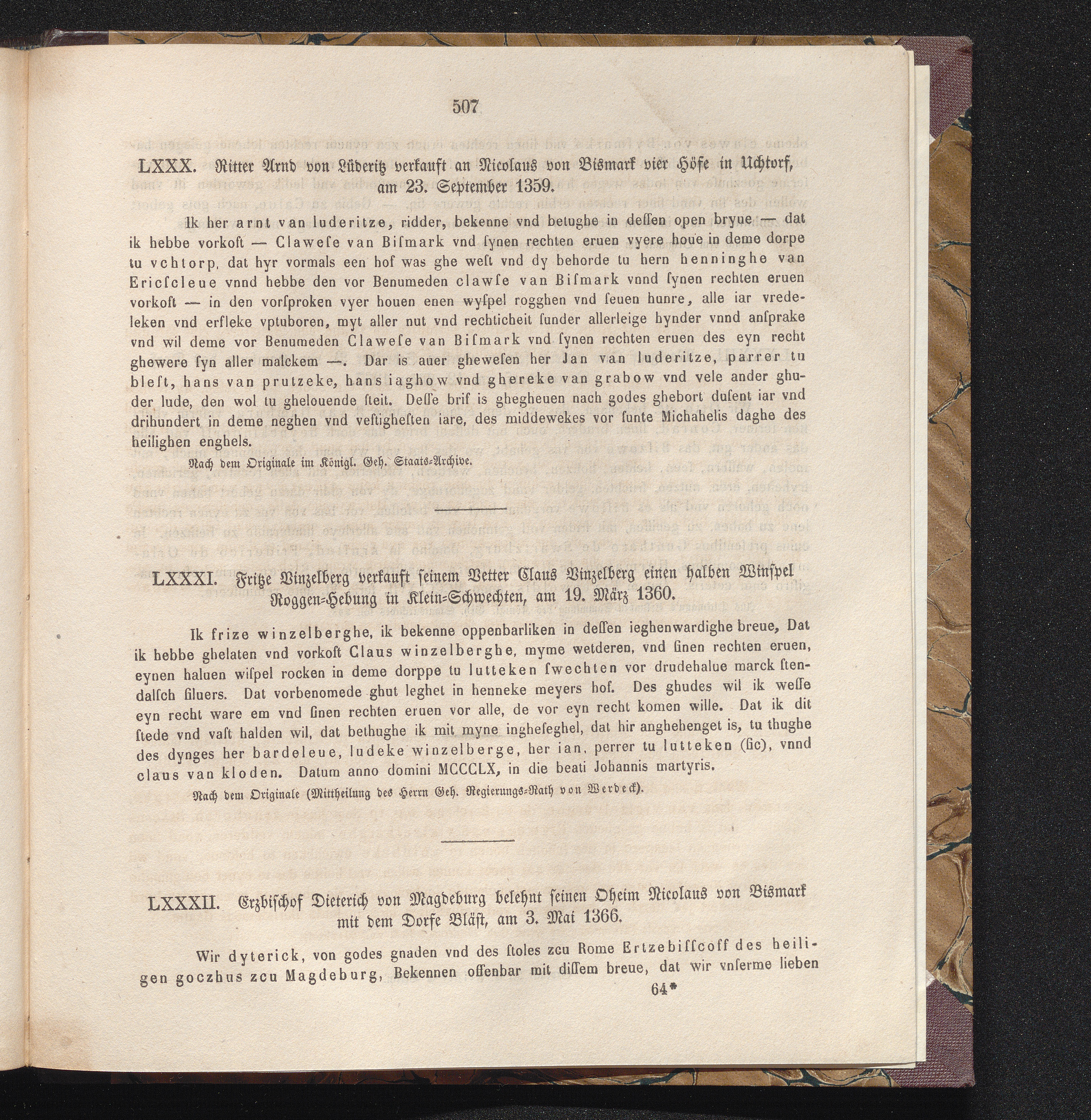 LXXXII. Erzbischof Dieterich von Magdeburg belehnt seinen Oheim Nicolaus von Bismark[...]